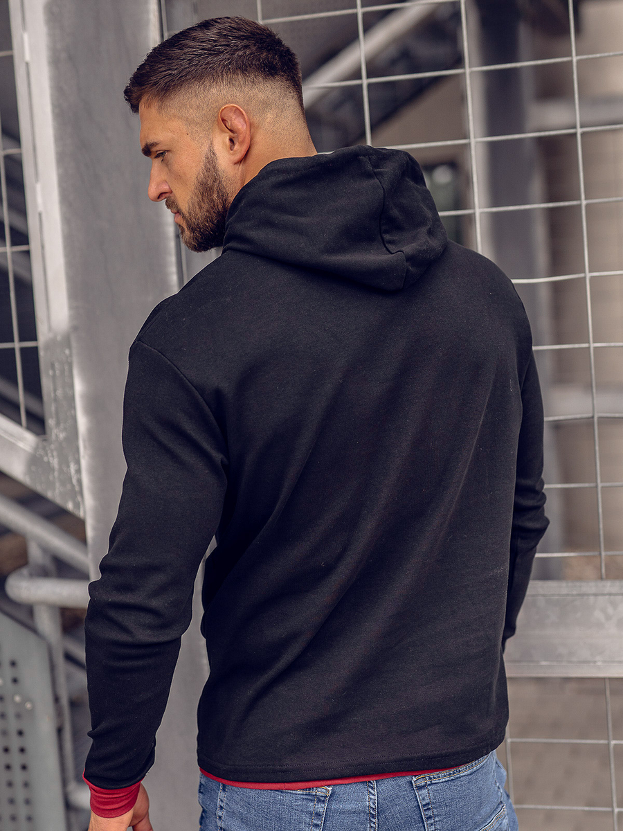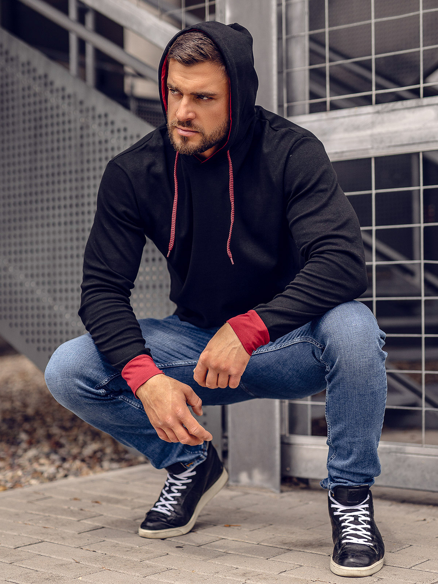 Черният мъжки суичър с качулка Bolf 145380 е универсален продукт, който ще изглежда страхотно в летни и зимни стилизации. Предлага се в няколко различни цветови варианта, което дава широки възможности при създаване на ежедневни стилизации. Суичърът в модерен цвят е в основата на добрия ourfit. Суичърът се облича през главата и има регулируема качулка, която ще ви предпази от студ и вятър. Долният подгъв и ръкавите са завършени с контрастираща веревна лента. Продукт от този тип е задължителен за любителите на спортния стил. Осигурява комфорт по време на разходка, джогинг или тренировка. Продуктът е изработен от 100% памук, което го прави приятен на допир и изключително удобен. Ще създадете интересна стилизация с дънки или джогъри. За по-хладните вечери също ще е страхотен в комбинация с яке тип бомбър.