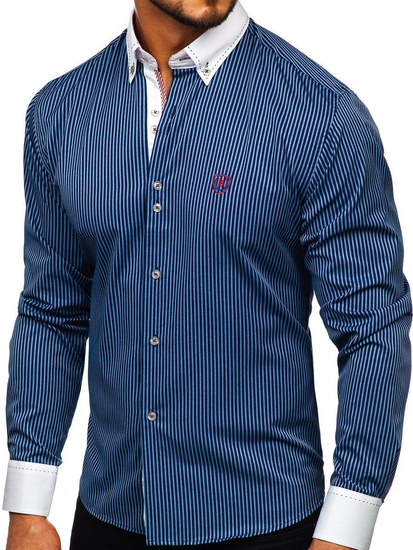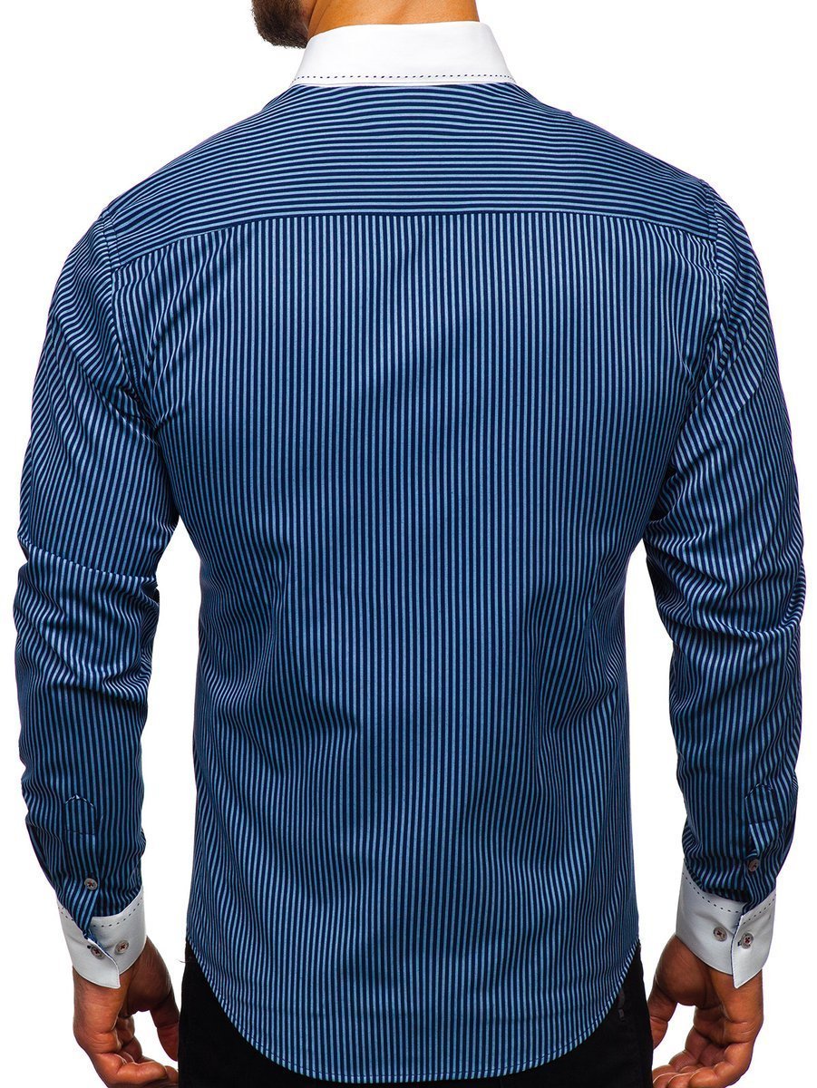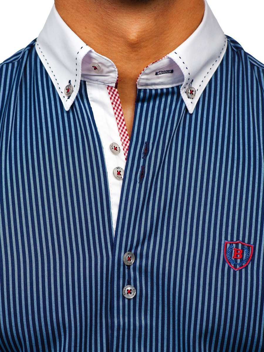 Отзиви и мнения на потребители за Мъжка раирана риза с дълъг ръкав тъмносиня Bolf 9717