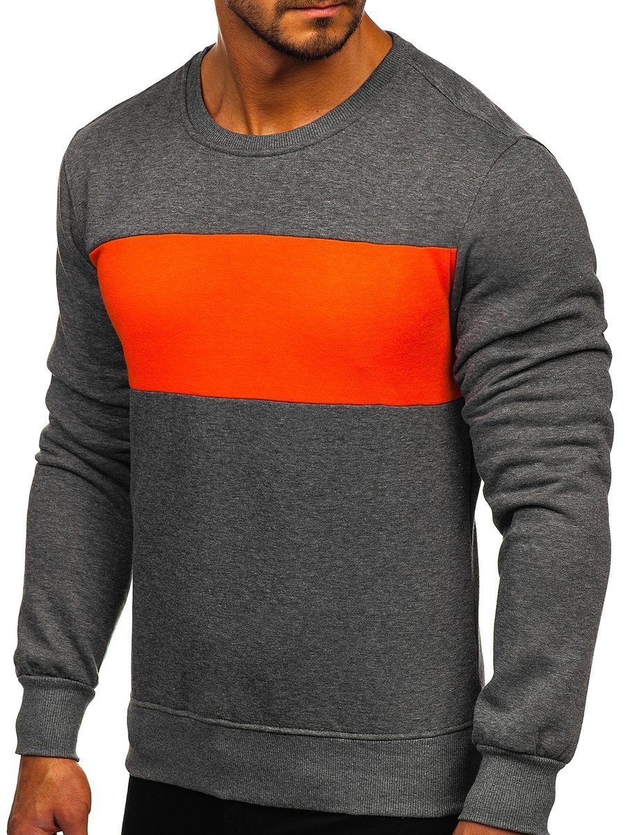 Графитено-оранжов мъжки суитшърт без качулка Bolf 2021