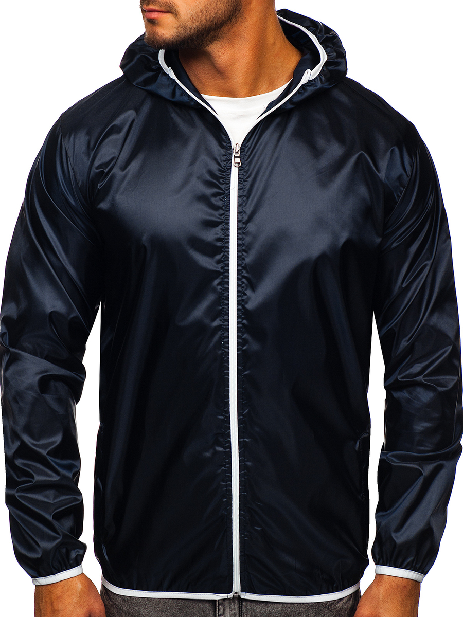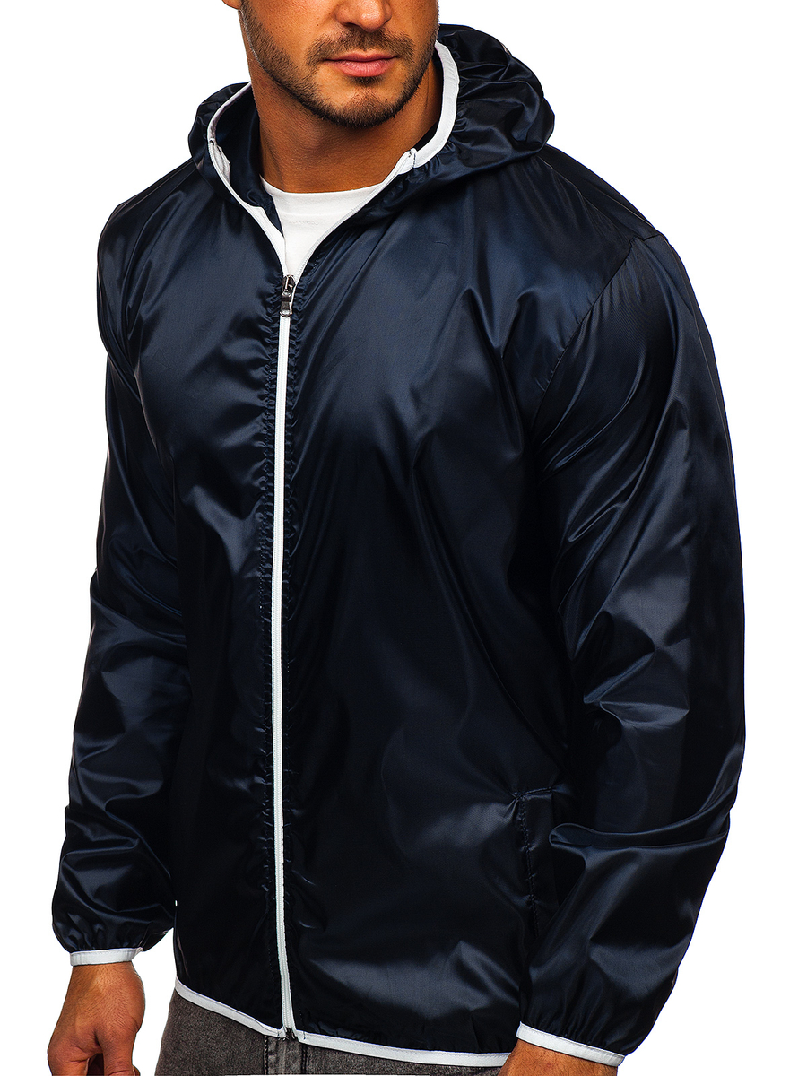 Отзиви и мнения на потребители за Тъмносиньо преходно мъжко яке ветровка с качулка BOLF 5060