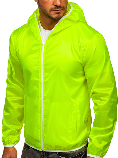 Отзиви и мнения на потребители за Преходно мъжко яке ветровка с качулка в цвят жълт неон BOLF 5060