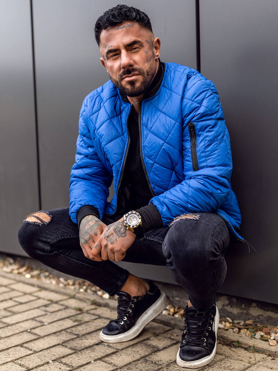 Синьо преходно мъжко яке капитонирано бомбър Bolf MY-01