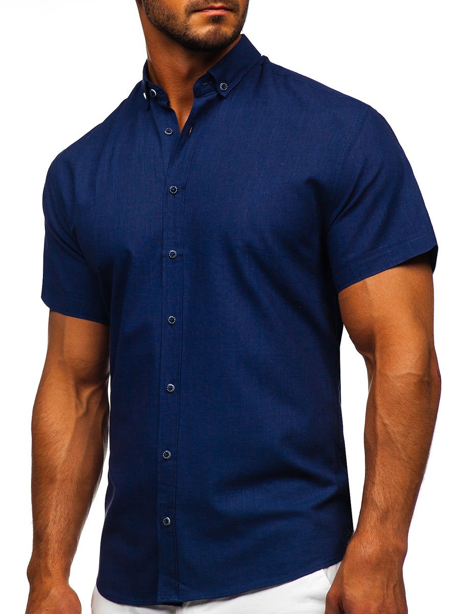 Отзиви и мнения на потребители за Тъмносиня мъжка риза с къс ръкав Bolf 20501