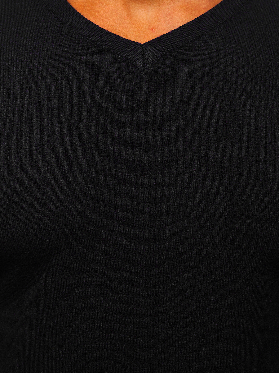 Черният мъжки пуловер с V-образно деколте Bolf YY03 е пуловер с семпла, класическа кройка. Продуктът е с деликатно V-образно деколте, завършено с връзки за стягане. С щрик са завършени също долния подгъв и ръкавите, благодарение на което пуловерът стои идеално на всяка фигура. Продуктът е изработен от мека, приятна на допир материя, която страхотно се адаптира по тялото. Материалът е 32% акрил, 27% полиестер, 23% найлон и 18% вискоза. Този модел продукт се предлага в над десет цветови варианта, така че можете да го съчетаете с всеки стил. Носете го на работа, училище, кино, на разходка или среща с приятели – благодарение на широката гама от цветове можете да изглеждате различно всеки ден. Класическият пуловер чудесно се съчетава с дънки и кожено яке, създавайки идеалният тоалет за излизане в града. Можете да го комбинирате с джогинг и суитшърт за по-небрежна визия.