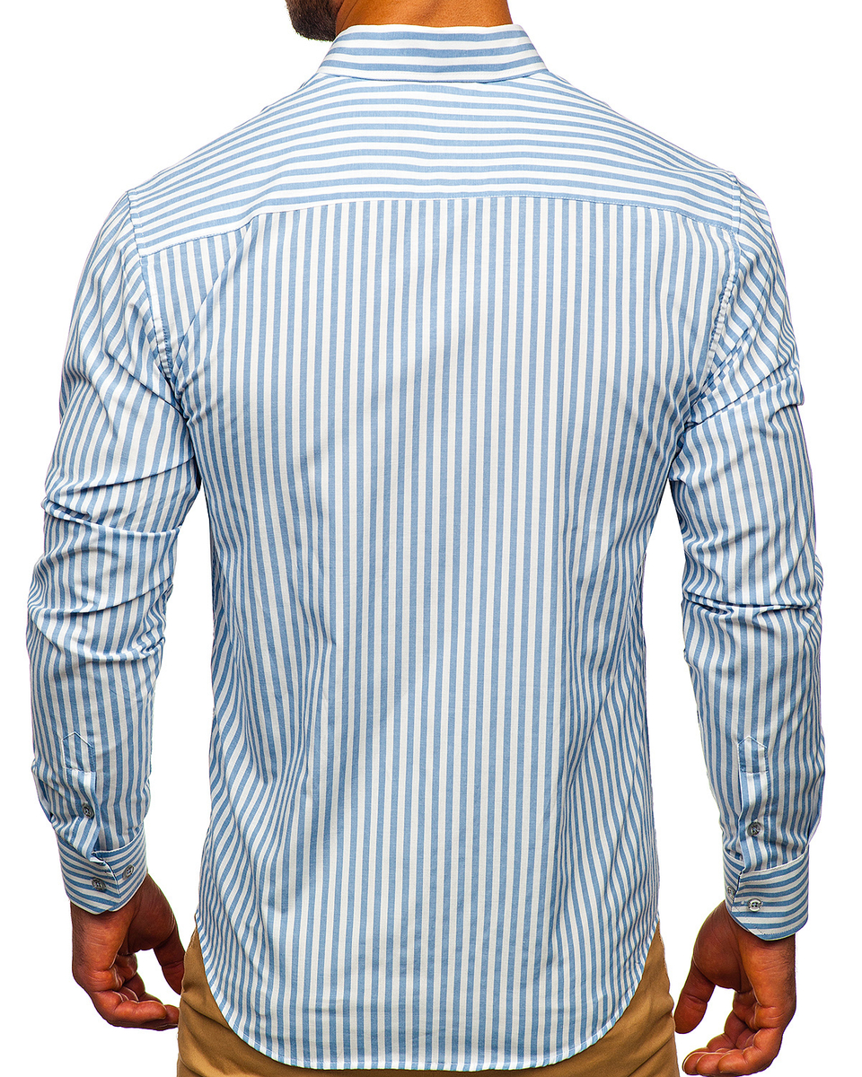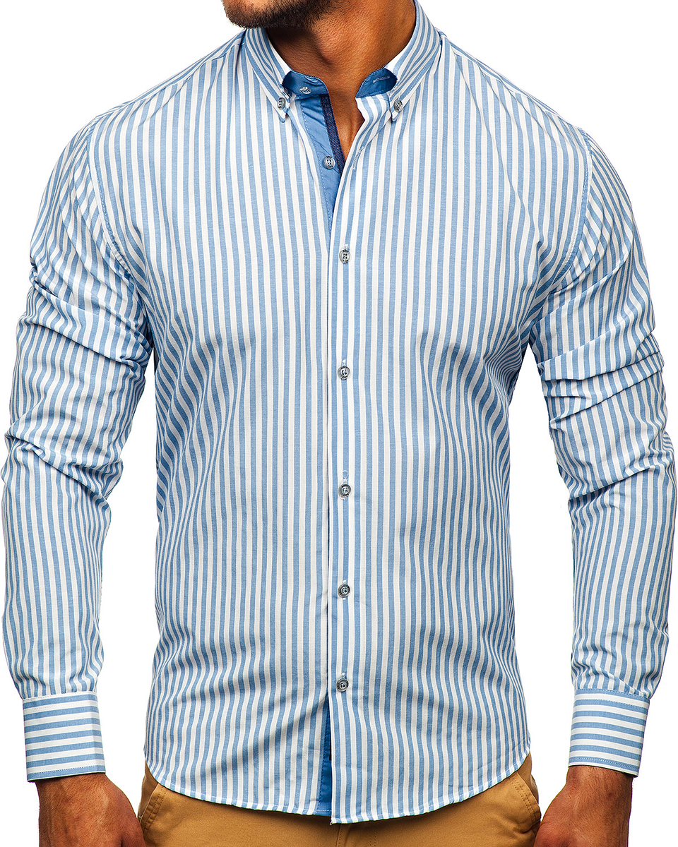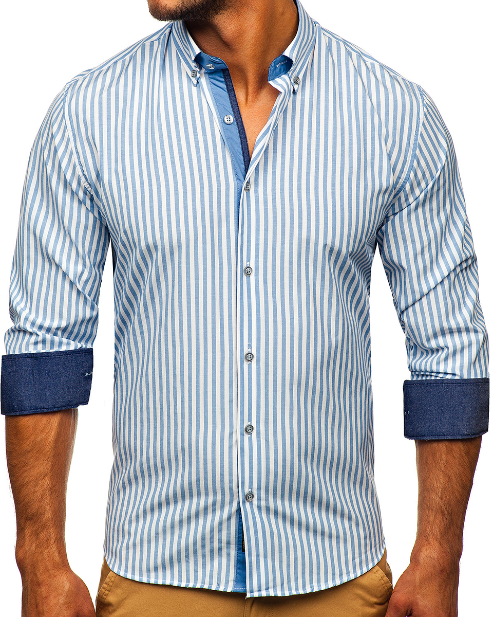 Отзиви и мнения на потребители за Тъмносиня мъжка риза на райета с дълъг ръкав Bolf 20704