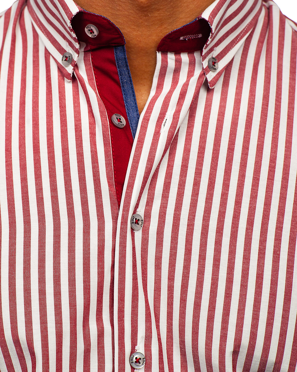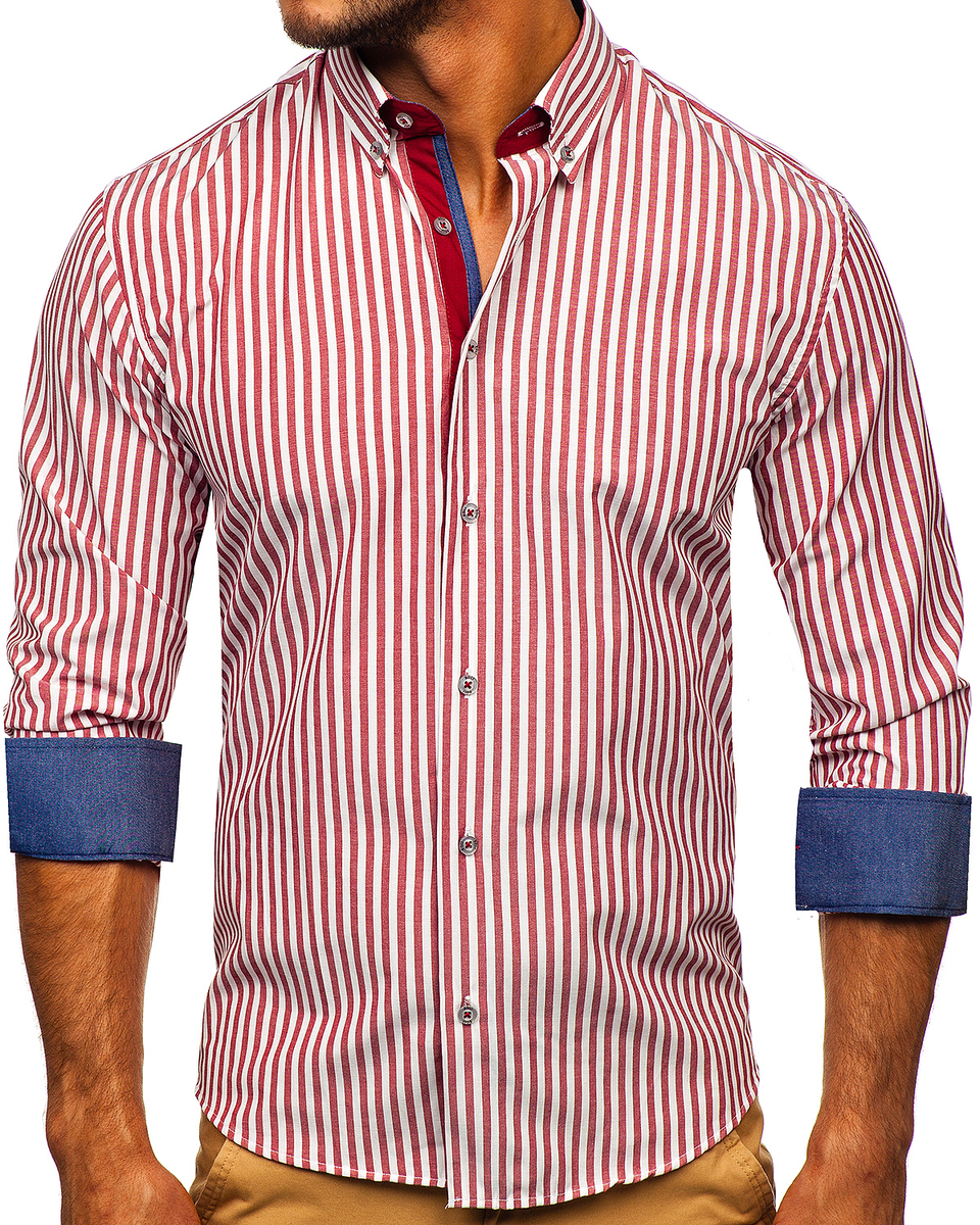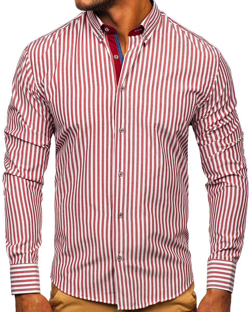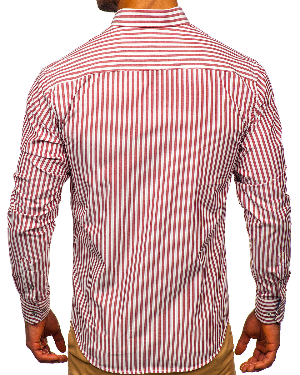 Бордо мъжка риза на райета с дълъг ръкав Bolf 20704