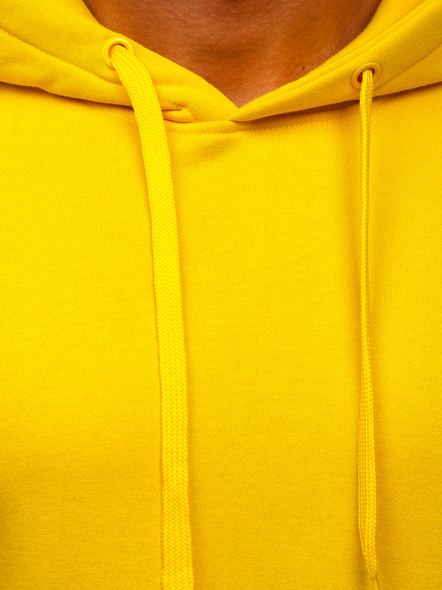Ясножълт мъжки суитшърт с принт, с качулка Bolf 2009 обличан през главата. Продуктът се отличава с регулируема качулка и практичен джоб тип кенгуру отпред. Спортният характер му придава прост стил, ръкави и дъно с еластичен подгъв. В кръста и в долната част е регулирано с връзки Суитшърт е изработен от мека плетена тъкан. Този модел се отличава с богата цветова гама, качулката може да се намери в повече от двадесет цветови варианта, което го прави лесен за избор на много outfit.