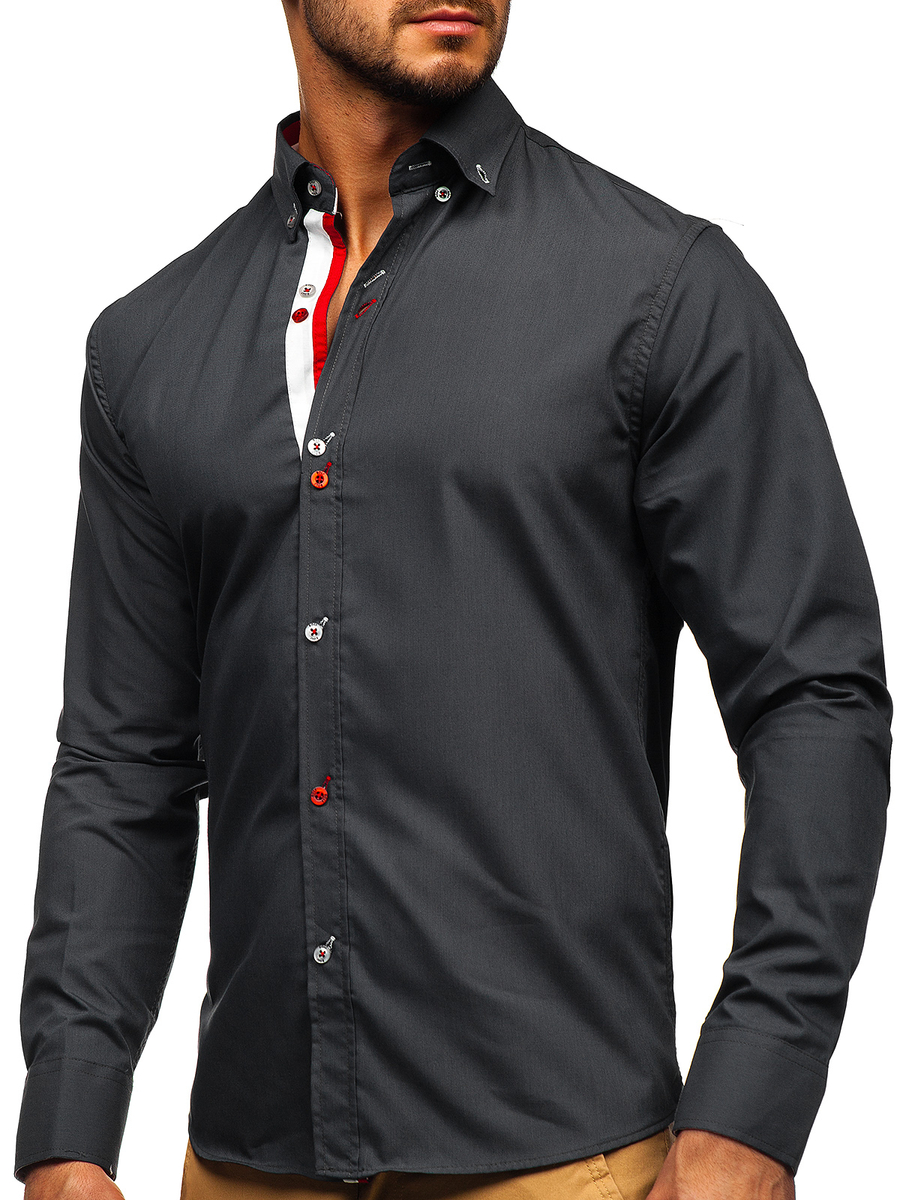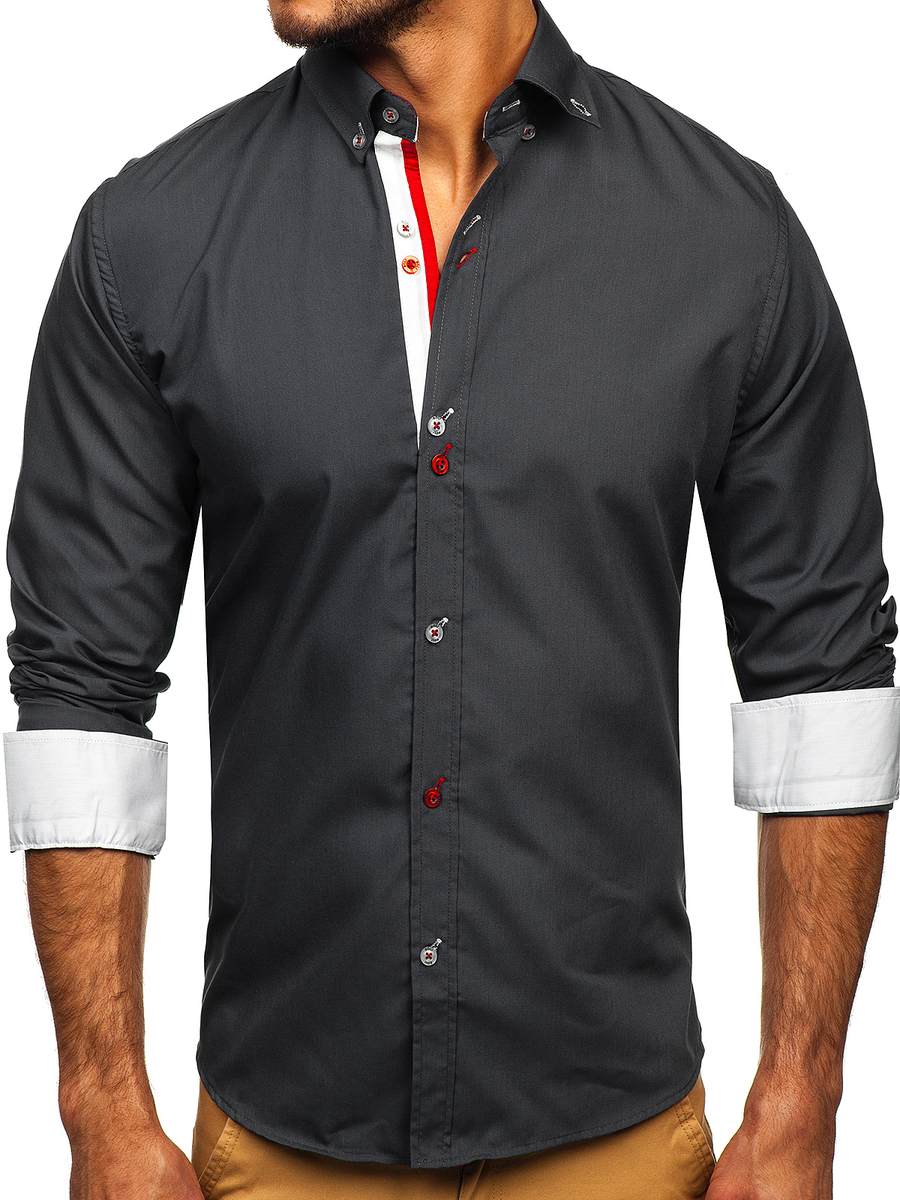 Отзиви и мнения на потребители за Графитна мъжка риза с дълъг ръкав Bolf 20710