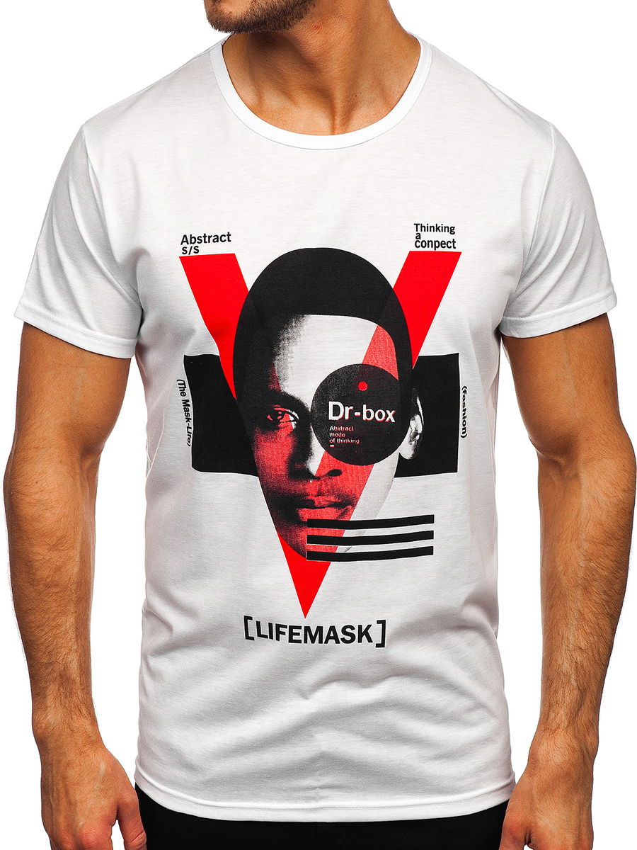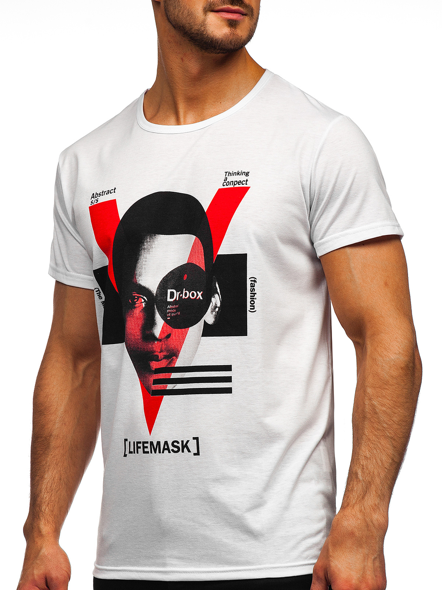 Бяла мъжка тениска с принт Bolf KS2552
