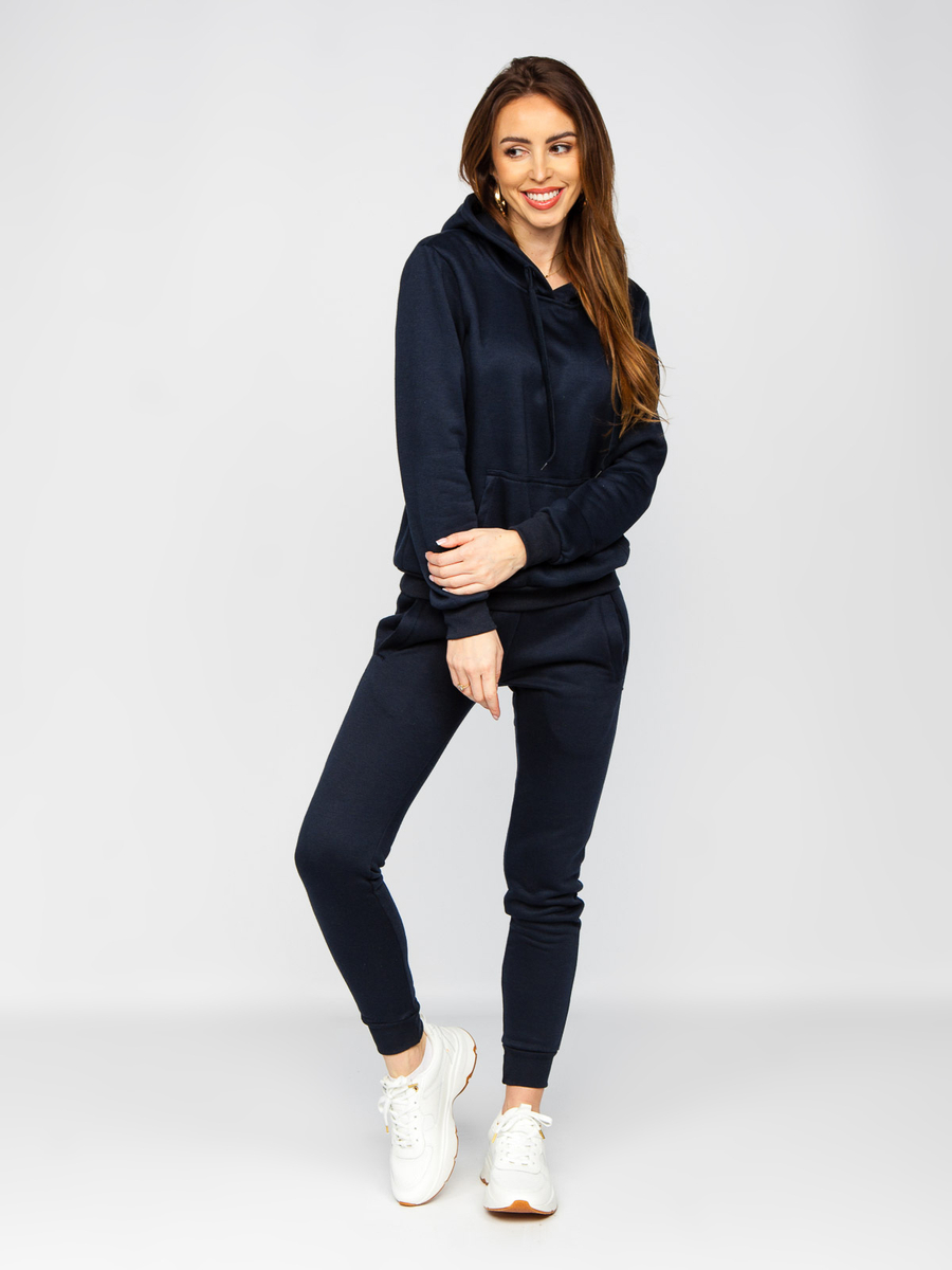 Отзиви и мнения на потребители за Тъмносин дамски спортен комплект с качулка Bolf 0002