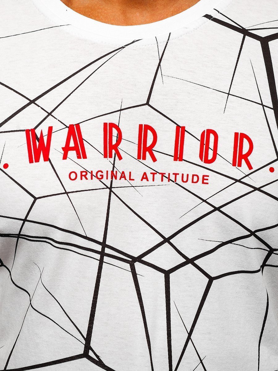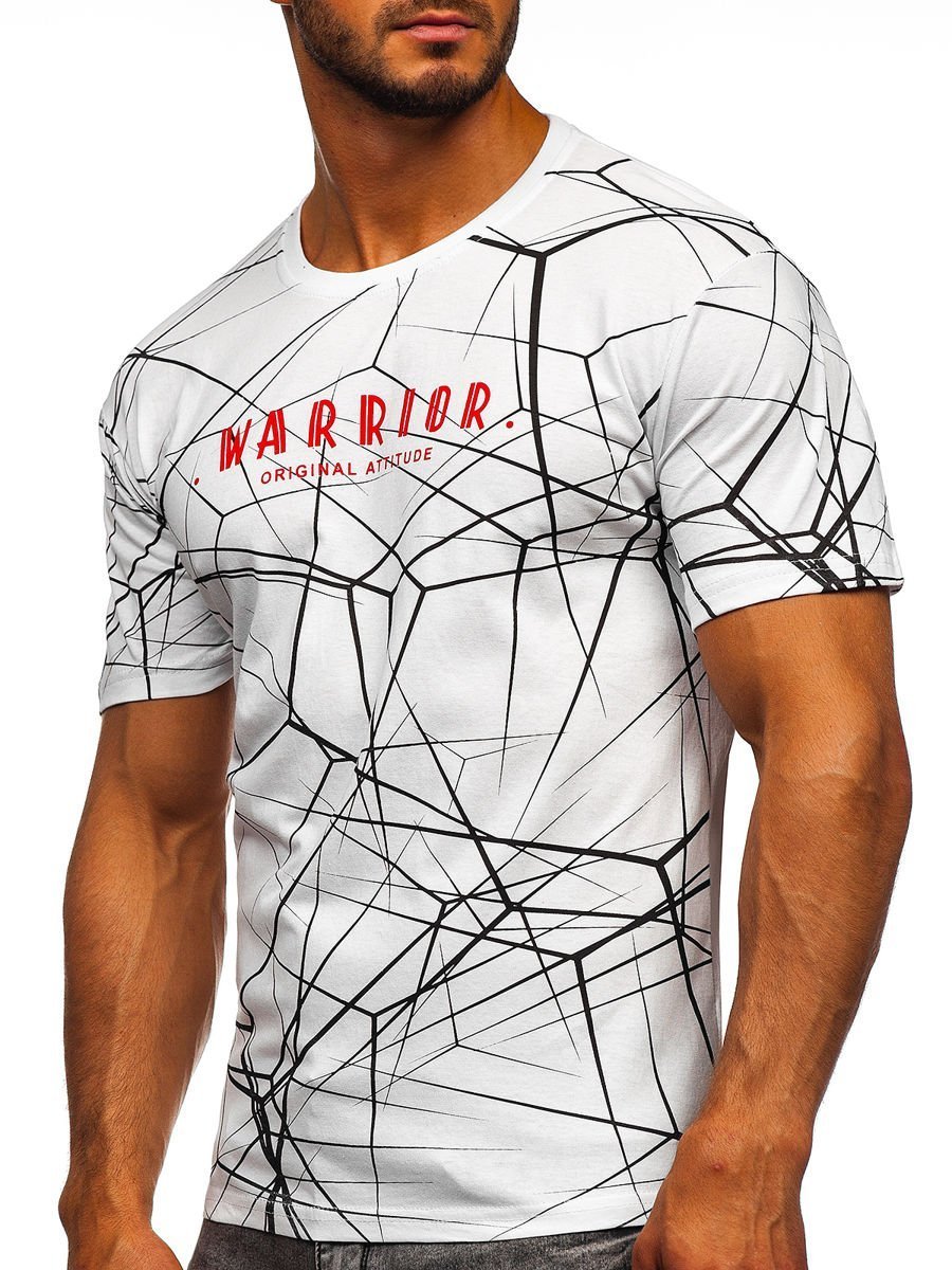 Biały t-shirt męski z nadrukiem Bolf SS10935 występuje w czterech wersjach kolorystycznych. Dzięki ciekawemu nadrukowi z przodu koszulka nabrała desingnerskiego charakteru. Produkt posiada uniwersalny, okrągły dekolt. Fason koszulki ładne dopasowuje się do sylwetki. Bardzo dobrej jakości T- shirt wykonany w 100% z bawełny jest bardzo przyjemny w dotyku. Świetnie sprawdzi się podczas wykonywania codziennych obowiązków jakimi są zakupy, zabawa czy wyjście z dziećmi na spacer. Główną zaletą koszulki jest przede wszystkim jej jakość i komfort, jaki zapewnia. Skomponuj swój codzienny look z bluzą rozpinaną, kurtką przejściową oraz jeansami. Świetnie będzie wyglądać w sportowym outficie ze spodniami dresowymi oraz sofshellem.