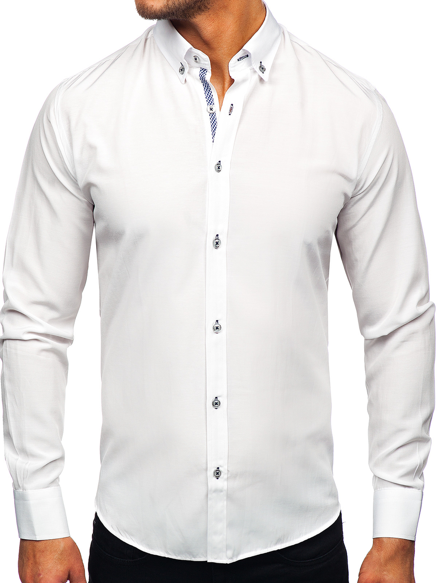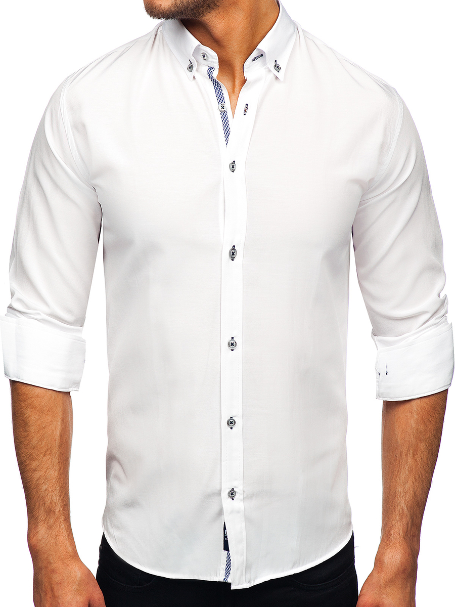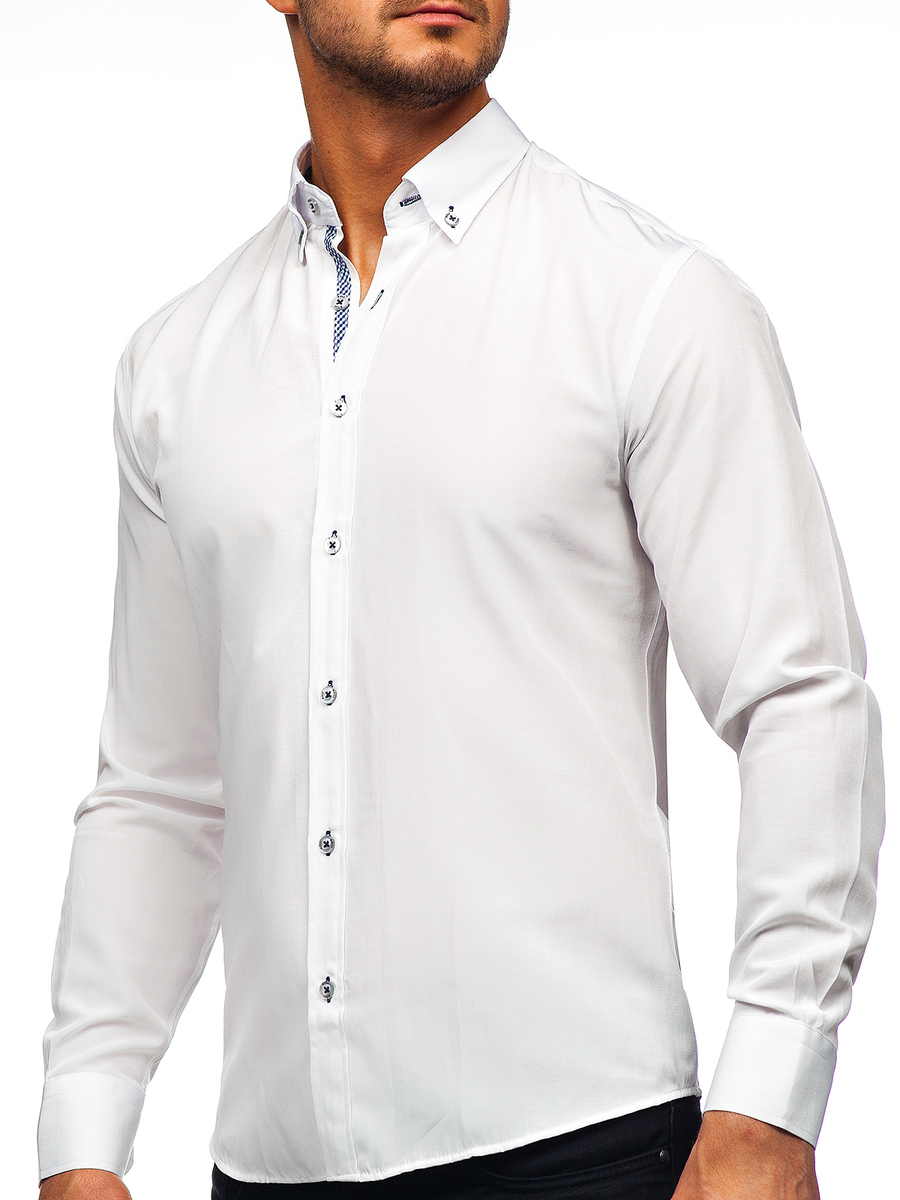 Бяла мъжка риза с дълъг ръкав Bolf 20717