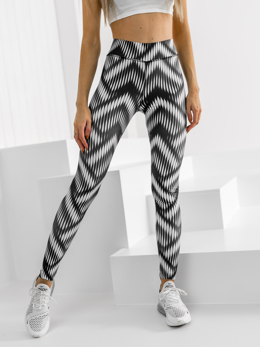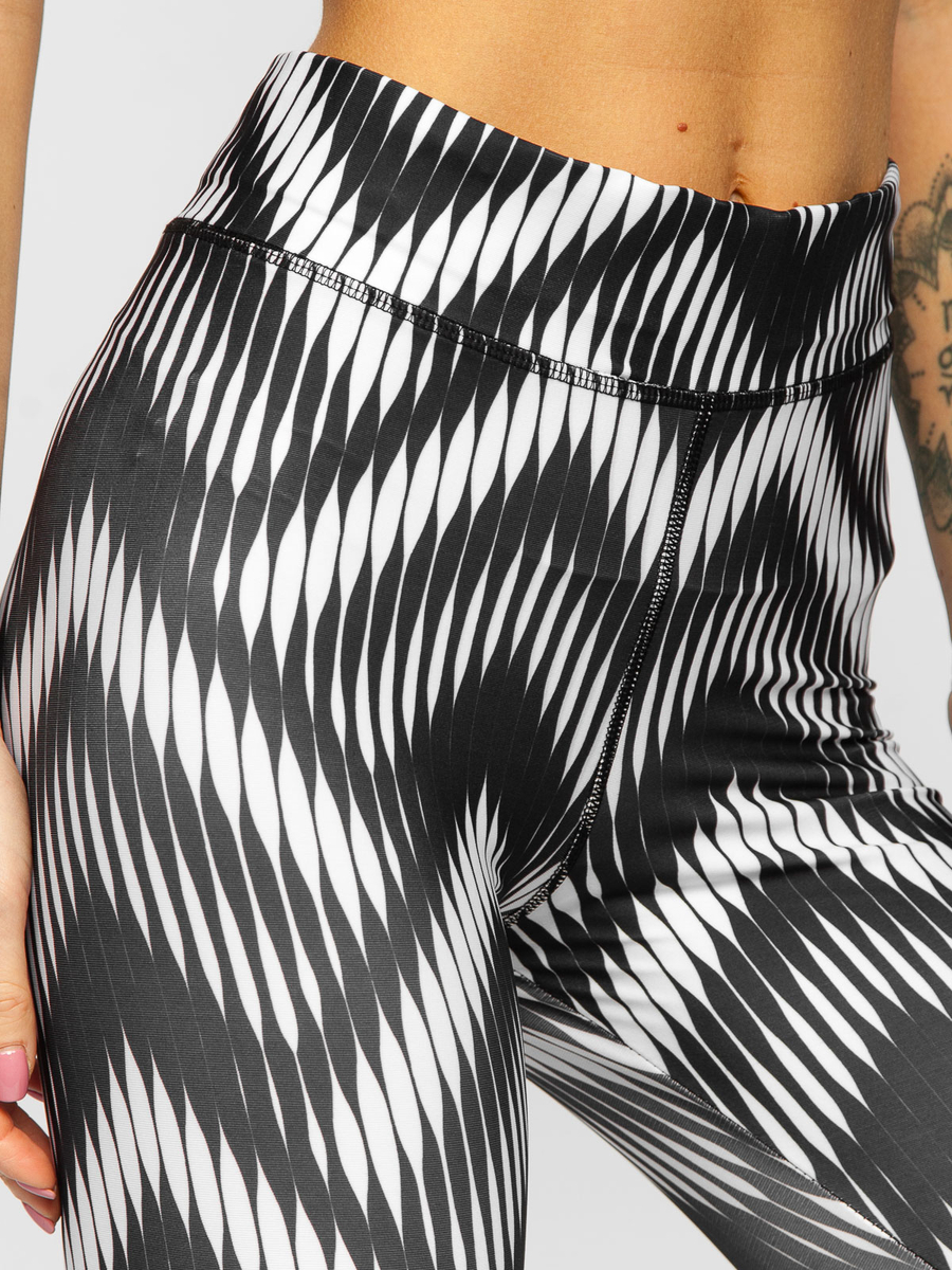 Черно-бели дамски клинове Bolf 20700 това е чудесен избор за жени, които ценят активния начин на живот. Чудесен за расходка или фитнес зала. Те са отпечатани в модерен дизайн. Благодарение на регулирането на талията, те ще паснат на всяка фигура. Той е изработен от смес от 92% памук и 35% полиестер, което го прави еластичен и приятен на допир. Могат да се носят и за суитшърти, преходно яке или тениска.