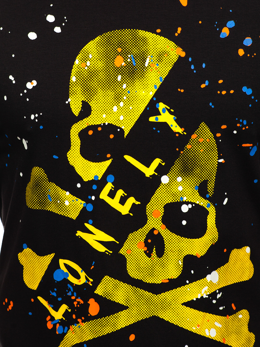 Черната мъжка тениска от Bolf Y70008 има кръгло деколте. Изработена е от памук и полиестер, което я прави гъвкава и приятна на допир. Тя ще бъде идеална за пътувания до града, срещи с приятели или разходки. Тениската в класически цвят може да пасне практически на всеки стил. Продуктът има уникален и дизайнерски принт отпред. С дънками или джогър или спортно долнище добре се съчетава. Тениска може да се носи с суитшърт или елек.