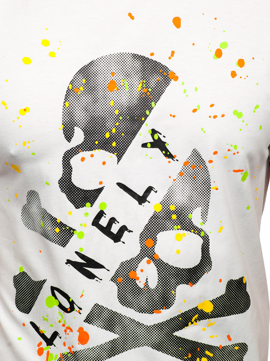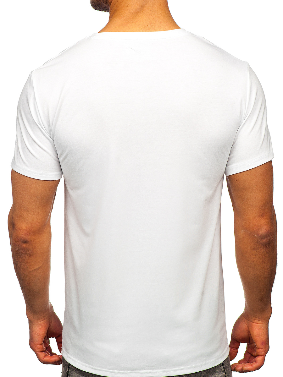 Бялата мъжка тениска от Bolf Y70008 е с кръгло деколте. Изработена е от памук и полиестер, което я прави гъвкава и приятна на допир. Тя ще бъде идеална за пътувания до града, срещи с приятели или разходки. Тениската в класически цвят може да пасне практически на всеки стил. Продуктът има уникален и дизайнерски принт отпред. С дънками или джогър или спортно долнище добре се съчетава. Тениска може да се носи с суитшърт или елек.