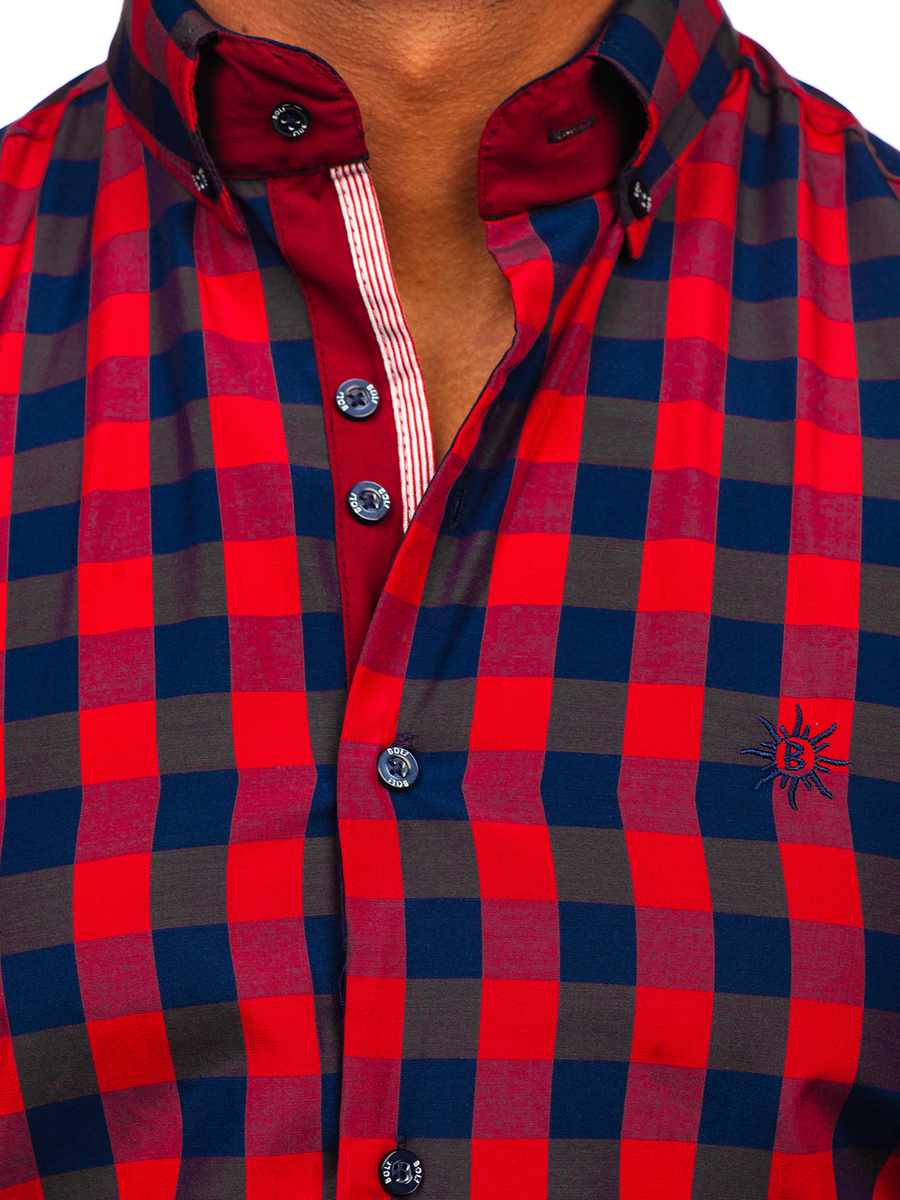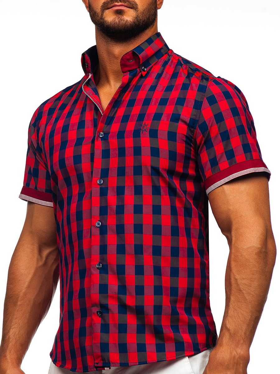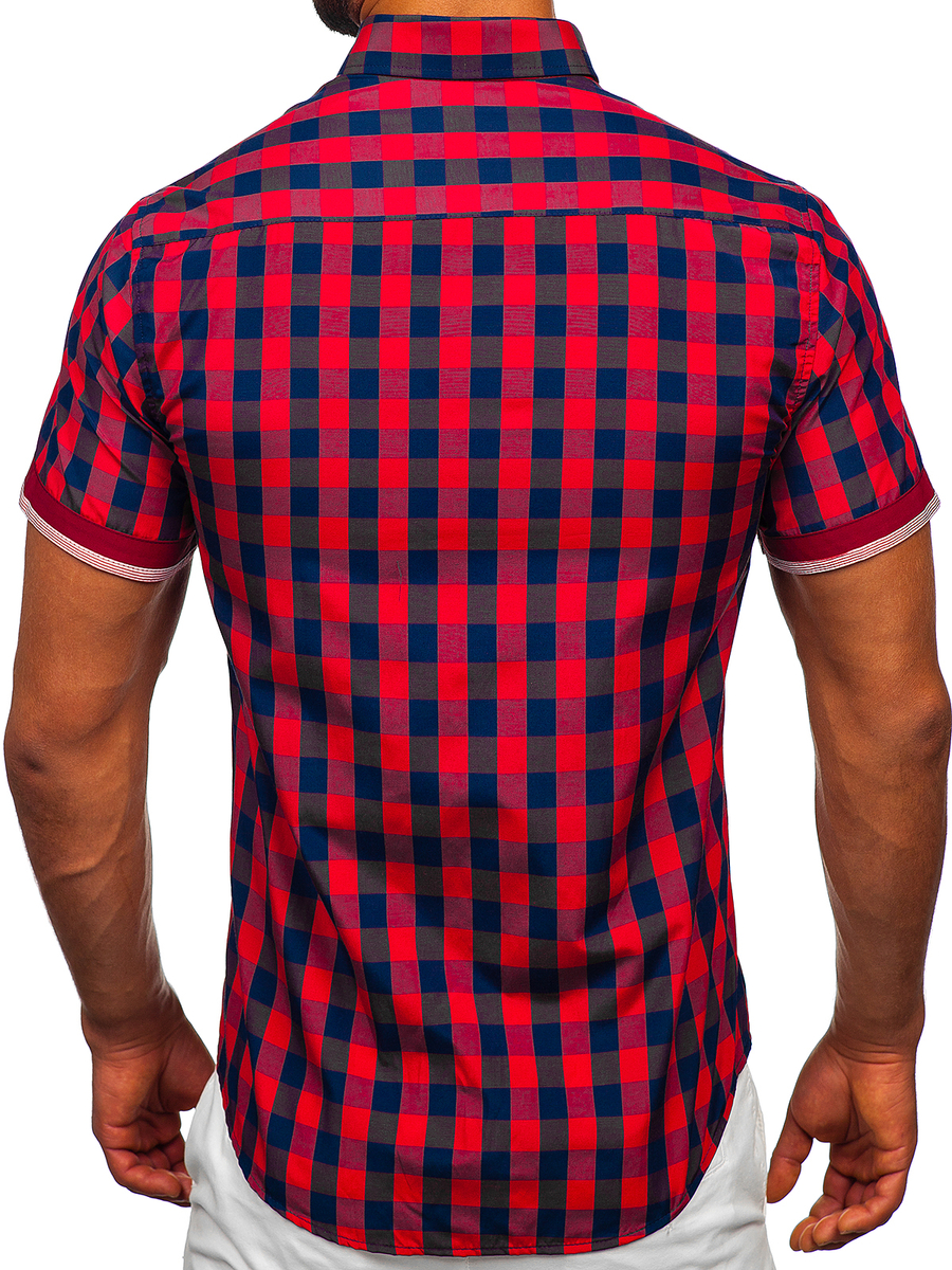 Бордо мъжка карирана риза с къс ръкав Bolf 4508