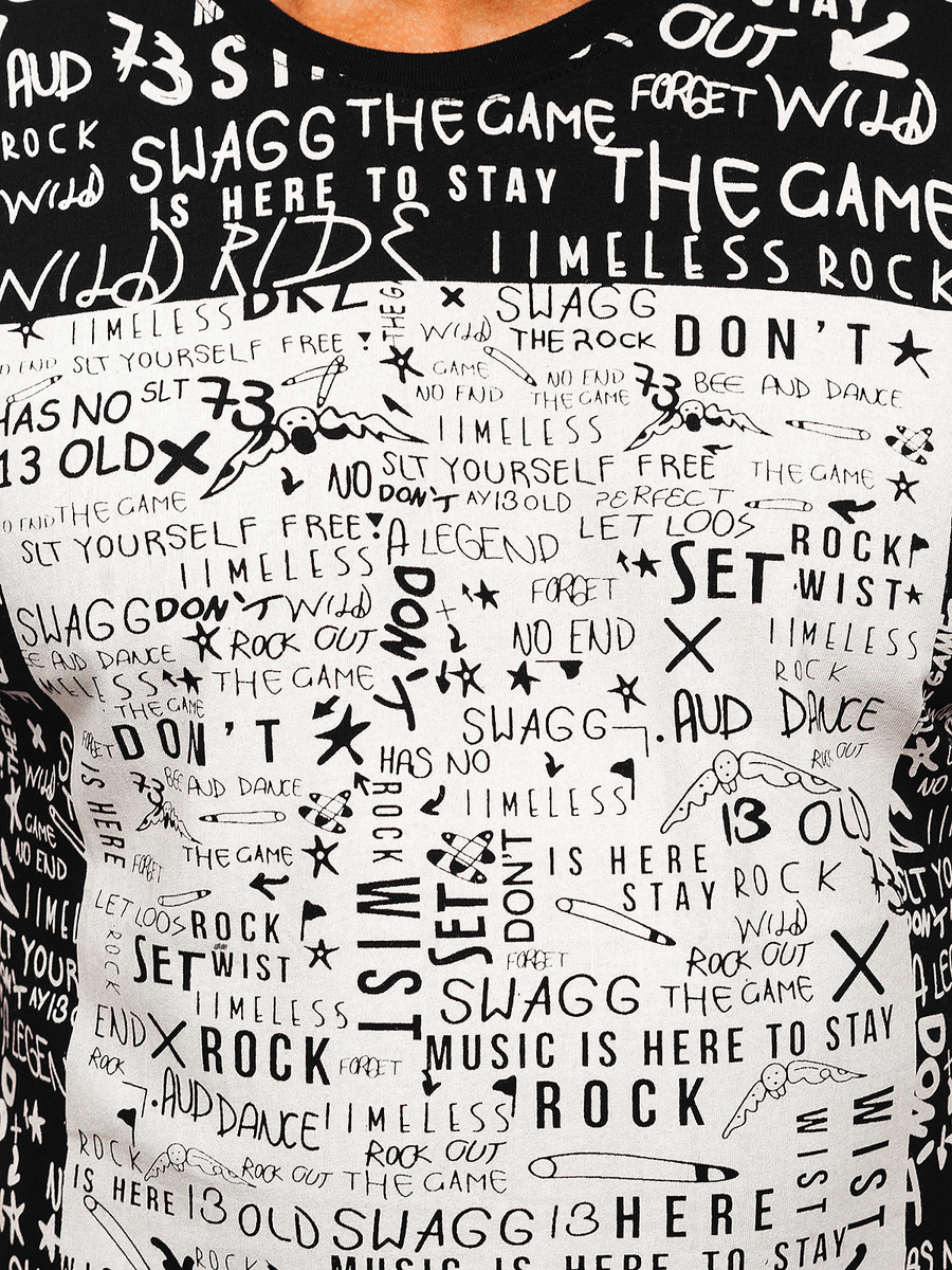 Прекрасни памучни мъжки тениски Bolf в черен цвят. С принт - надписи по цялата повърхност Черна мъжка риза изглежда страхотно с дънками. Носи я с джогър.