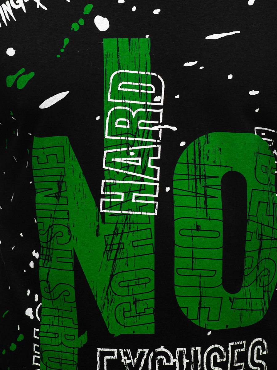 Черният потник с щампа Bolf 14825 е чудесно предложение за мъже, които обичат модата и стила. Изработен от 100% памук. Той е мек и приятен на допир, еластичен и ефирен, което го прави идеален избор за пролетта и лятото. Има кръгло деколте и стои добре на фигурата. Дизайнерският принт отпред добавя характер и привлича погледа. Белият цвят улеснява съчетаването с други елементи от гардероба. Той ще бъде идеален за ежедневна употреба, пътуване до града, фитнес зала или джогинг. Носи го с къси панталони или дънки.