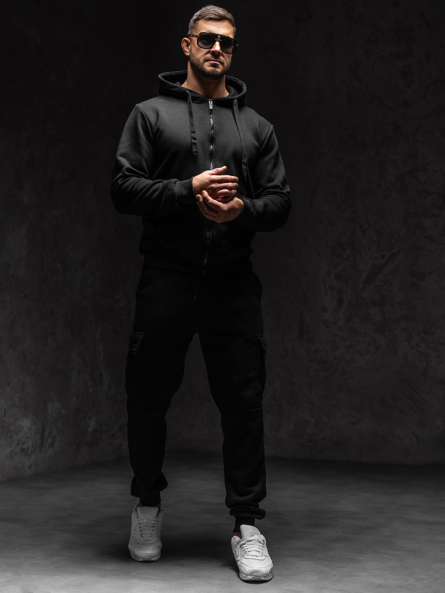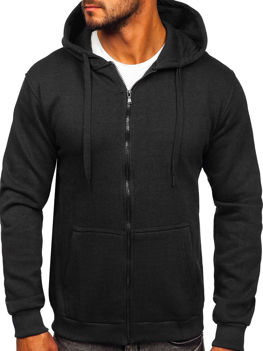 Мъжкият суичър с качулка в черен цвят Bolf 2008 се закопчава с цип. Това е класически суитшърт, изработен от мек, приятен на допир трикотаж. Продуктът се характеризира с много ярки цветове, в които се предлага. Има регулируема качулка в плътен цвят и странични джоба. Долният подгъв и ръкавите са завършени с ластичен маншет Суитшърът силно се препоръчва за феновете на минимализма и комфорта в модата. Ефектен и удобен. Те са задължителен елемент във всеки мъжки гардероб. Простият класически стил в интересни цветове прави този модел суитшърти идеален завършек на много ежедневни и street стилизации. Елегантният мъжки суитшърт с цип е предложение, което си струва да имате в гардероба си не в един, а дори в няколко цветови варианта. От класическото черно през сини и зелени нюанси до малко по-екстравагантни оранжеви, жълти или розови разцветки. Практичен суитшърт по всяко време на годината.