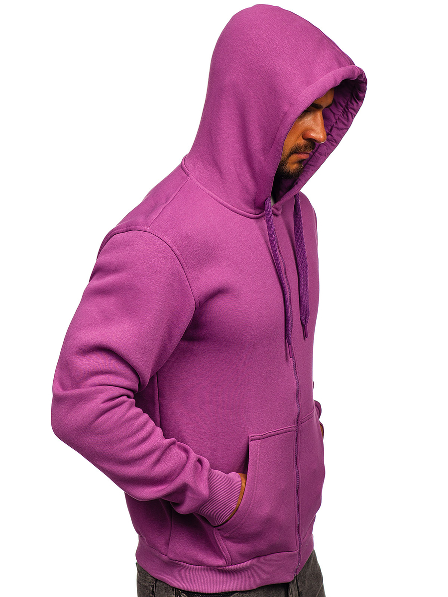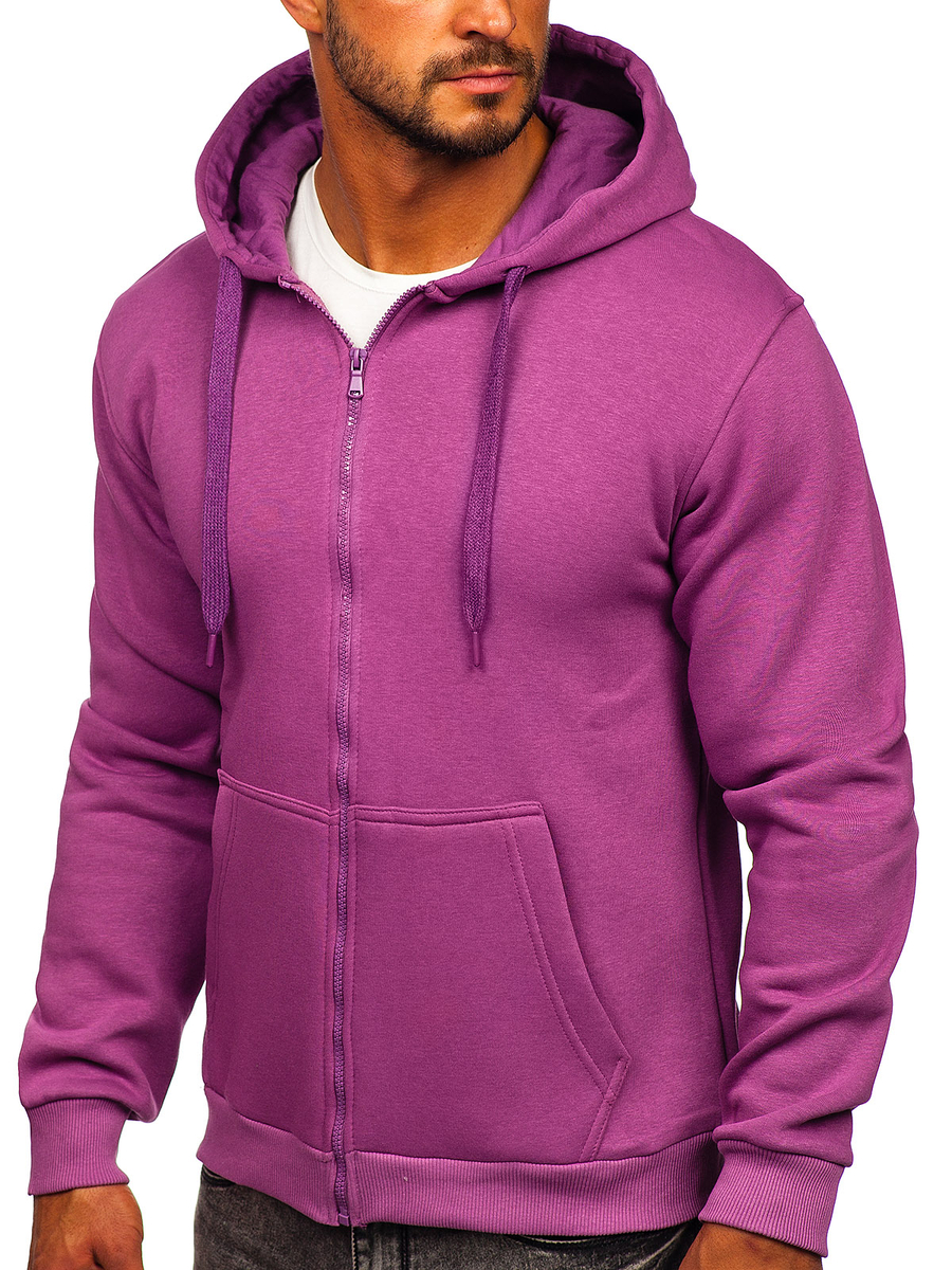 Мъжкият суичър с качулка във виолетов цвят Bolf 2008A се закопчава с цип. Това е класически суитшърт, изработен от мек, приятен на допир трикотаж. Продуктът се характеризира с много ярки цветове, в които се предлага. Има регулируема качулка в плътен цвят и странични джоба. Долният подгъв и ръкавите са завършени с ластичен маншет Суитшърът силно се препоръчва за феновете на минимализма и комфорта в модата. Ефектен и удобен. Те са задължителен елемент във всеки мъжки гардероб. Простият класически стил в интересни цветове прави този модел суитшърти идеален завършек на много ежедневни и street стилизации. Елегантният мъжки суитшърт с цип е предложение, което си струва да имате в гардероба си не в един, а дори в няколко цветови варианта. От класическото черно през сини и зелени нюанси до малко по-екстравагантни оранжеви, жълти или розови разцветки. Практичен суитшърт по всяко време на годината.