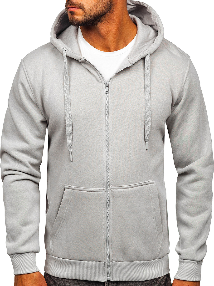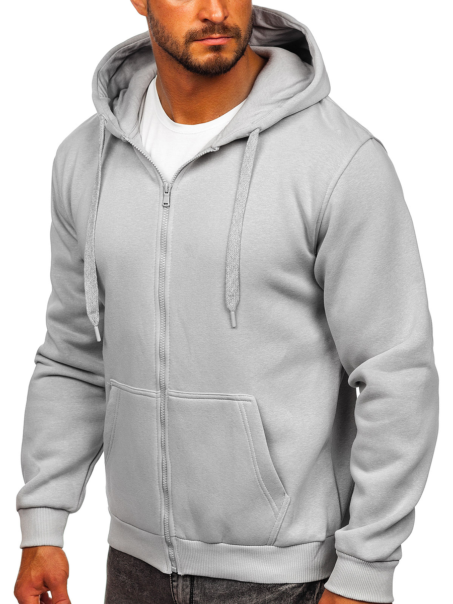 Мъжкият суичър с качулка в сив цвят Bolf 2008 се закопчава с цип. Това е класически суитшърт, изработен от мек, приятен на допир трикотаж. Продуктът се характеризира с много ярки цветове, в които се предлага. Има регулируема качулка в плътен цвят и странични джоба. Долният подгъв и ръкавите са завършени с ластичен маншет Суитшърът силно се препоръчва за феновете на минимализма и комфорта в модата. Ефектен и удобен. Те са задължителен елемент във всеки мъжки гардероб. Простият класически стил в интересни цветове прави този модел суитшърти идеален завършек на много ежедневни и street стилизации. Елегантният мъжки суитшърт с цип е предложение, което си струва да имате в гардероба си не в един, а дори в няколко цветови варианта. От класическото черно през сини и зелени нюанси до малко по-екстравагантни оранжеви, жълти или розови разцветки. Практичен суитшърт по всяко време на годината.
