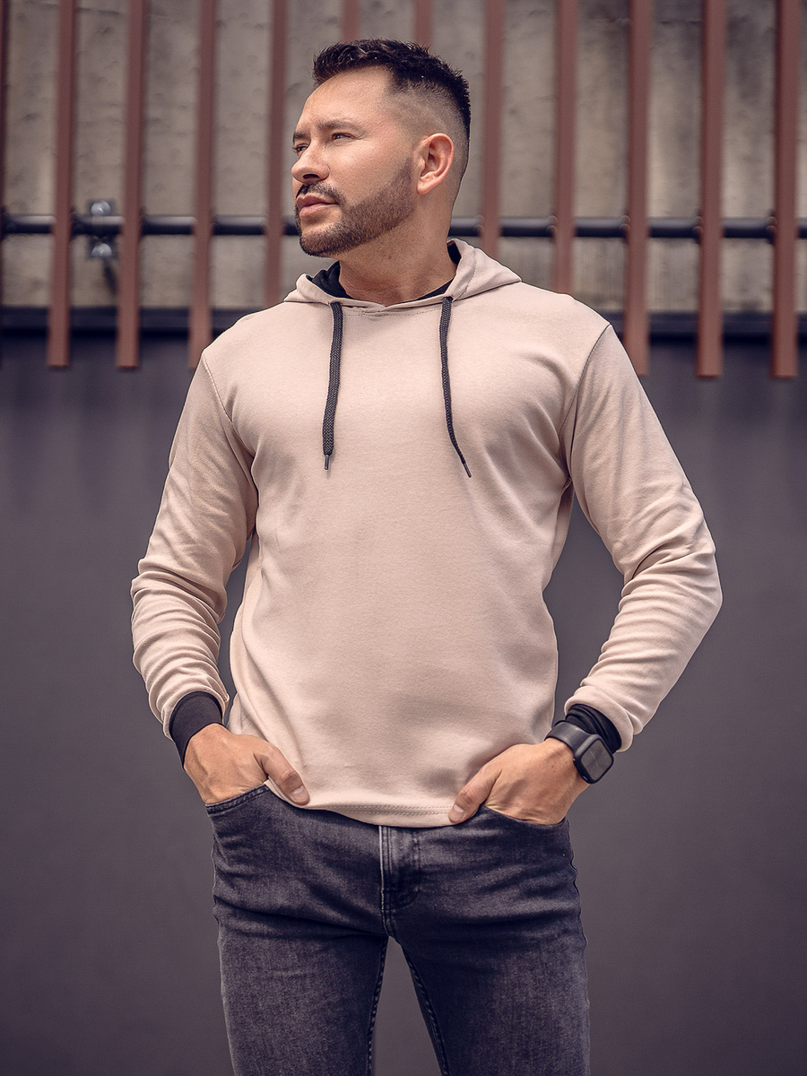 Отзиви и мнения на потребители за Мъжки суитшърт с качулка в бежово и черно Bolf 145380