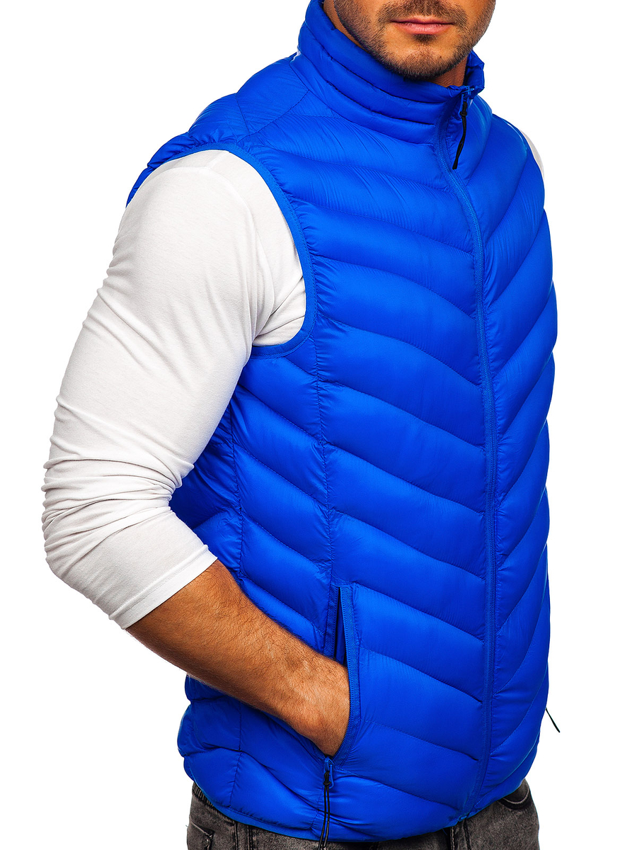 Син капитониран мъжки елек Bolf HDL88006 е идеален за спортни аутфити. Е задължителен елемент в гардероба на всеки мъж. Този модел е с цип и има яка. Два външни джоба. Долният подгъв и отворите за ръцете са завършени с еластична веревна лента. Жилетката е подходяща за разходки или спорт. Продуктът е изработен от 100% найлон. Създаде perfect match с дджогъри и спортно долнище.