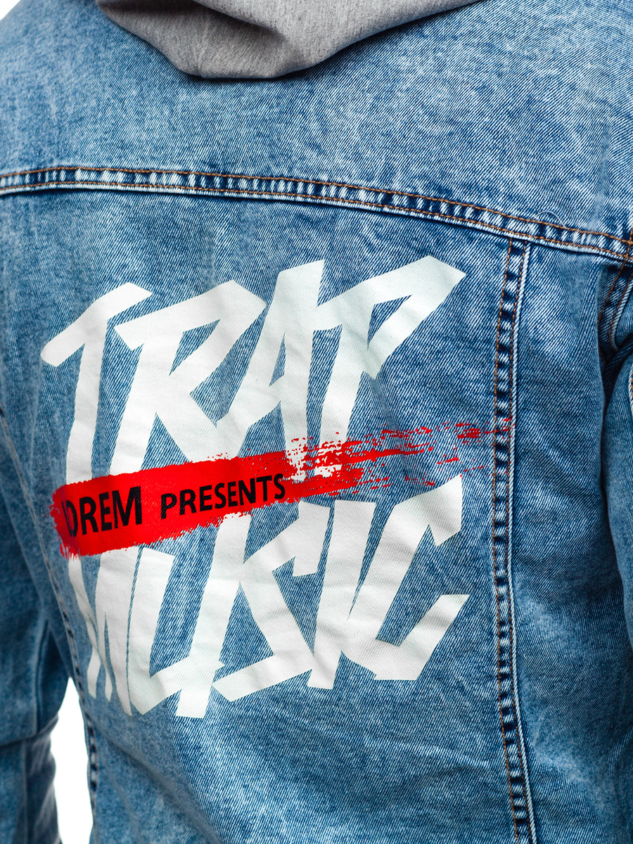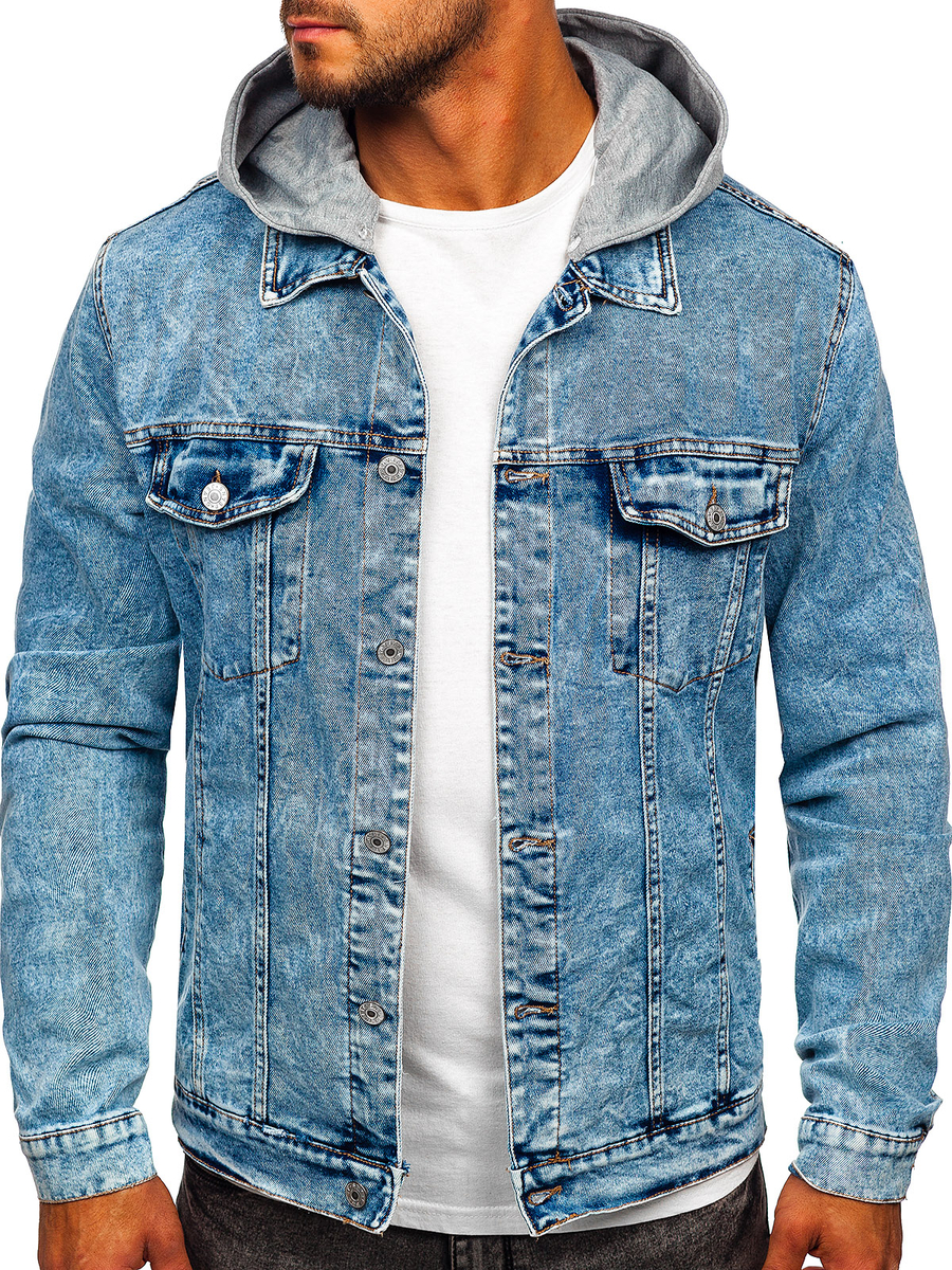 Тъмносиньо мъжко дънково яке с качулка Bolf HY958