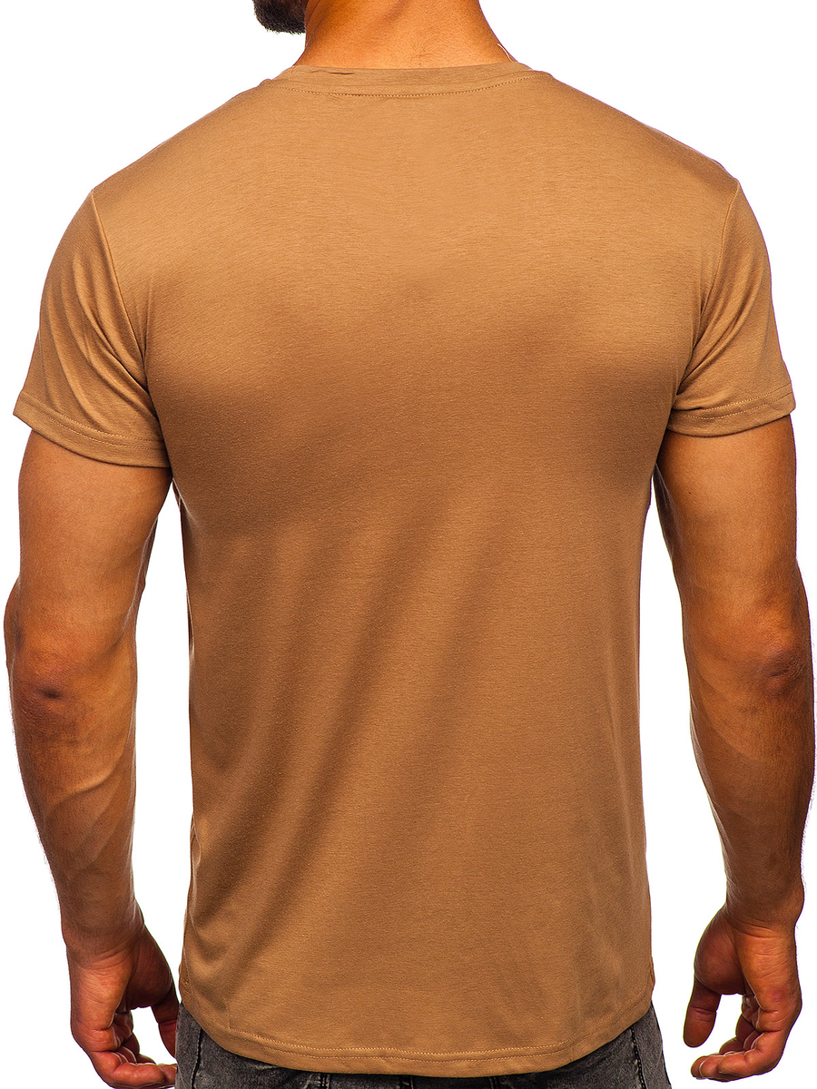 Кафява тениска на Bolf 2005 има класическа кройка и състав. Този модел на продукта се предлага в няколко интересни цвята. Върви добре с всяка мъжка фигура. Има кръгъл изрез. Тениска basic ще бъде отлична основа за създаване на много интересни изображения.Тениска е идеален за всекидневно носене, musthave всеки мъжки стил Модни цветове дават характер на всеки аутфит. Добре се съчетава с дънки, карго или джогър панталони. Можете да го обличам под суитшърт с каачулка, кожено яке или бомбър.