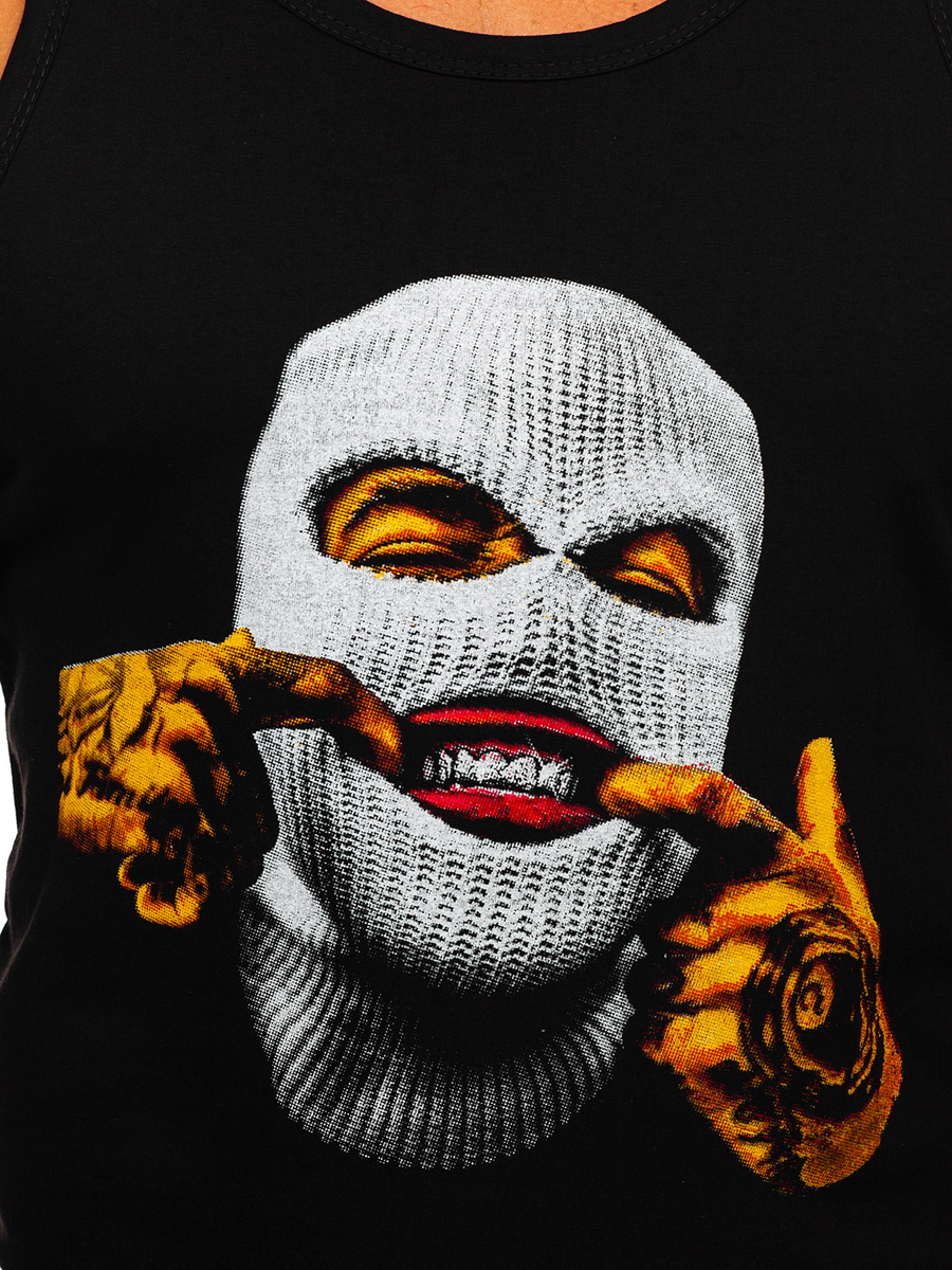 Черният потник с щампа Bolf 14844 е изработен от висококачествени материали, мек е на допир и не ограничава движенията. Правата кройка осигурява комфорт и удобство по време на носене. Потникът ще бъде чудесен за различни поводи - пътуване до града, фитнес, джогинг или среща с приятели. Дизайнерският принт отпред добавя оригиналност и изключителен характер. Подходящ е както за спортен комплект, така и за карго панталон.