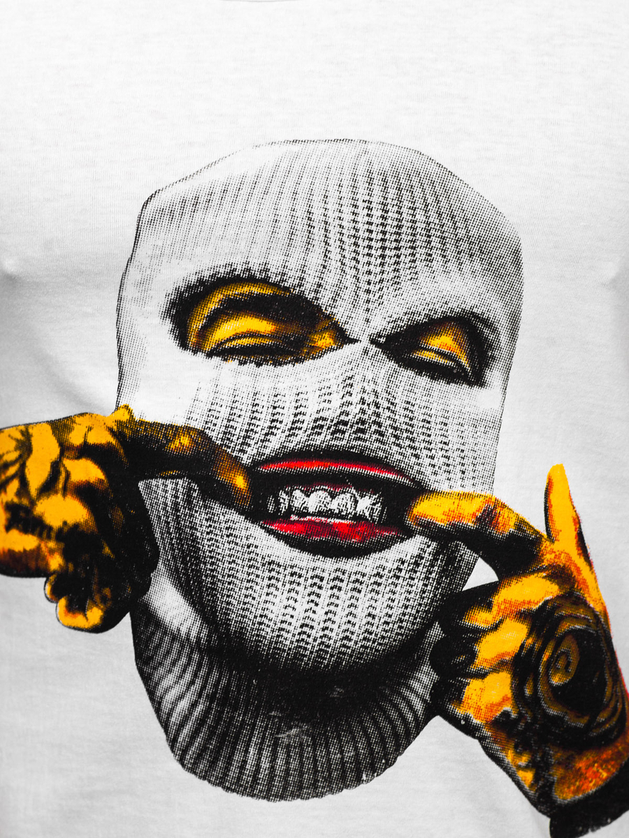 Белият потник с щампа Bolf 14844 е изработен от висококачествени материали, мек е на допир и не ограничава движенията. Правата кройка осигурява комфорт и удобство по време на носене. Потникът ще бъде чудесен за различни поводи - пътуване до града, фитнес, джогинг или среща с приятели. Дизайнерският принт отпред добавя оригиналност и изключителен характер. Подходящ е както за спортен комплект, така и за карго панталон.