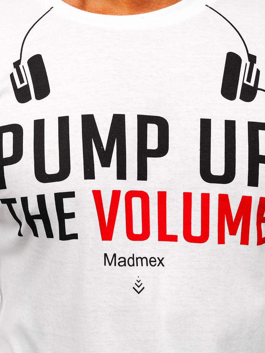 Мъжка тениска с дълъг ръкав с принт бяла Bolf 1219