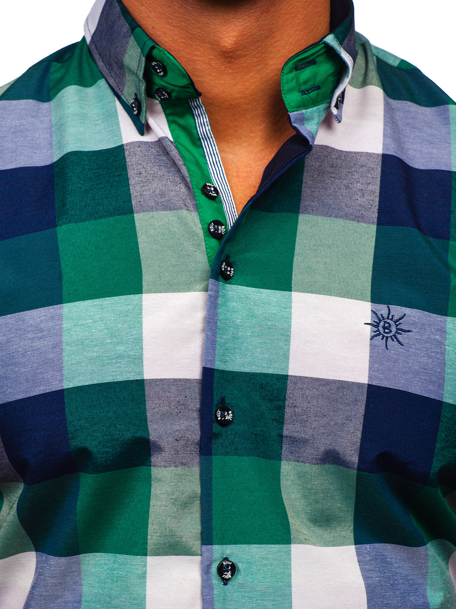 Отзиви и мнения на потребители за Мъжка карирана риза с къс ръкав зелена Bolf 5532-1