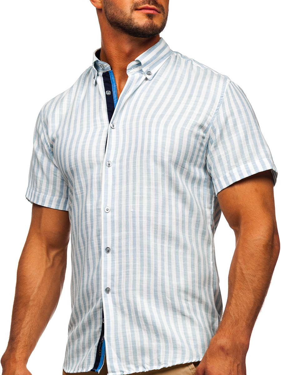 Отзиви и мнения на потребители за Небесносиня мъжка рaирана риза с къс ръкав Bolf 21500