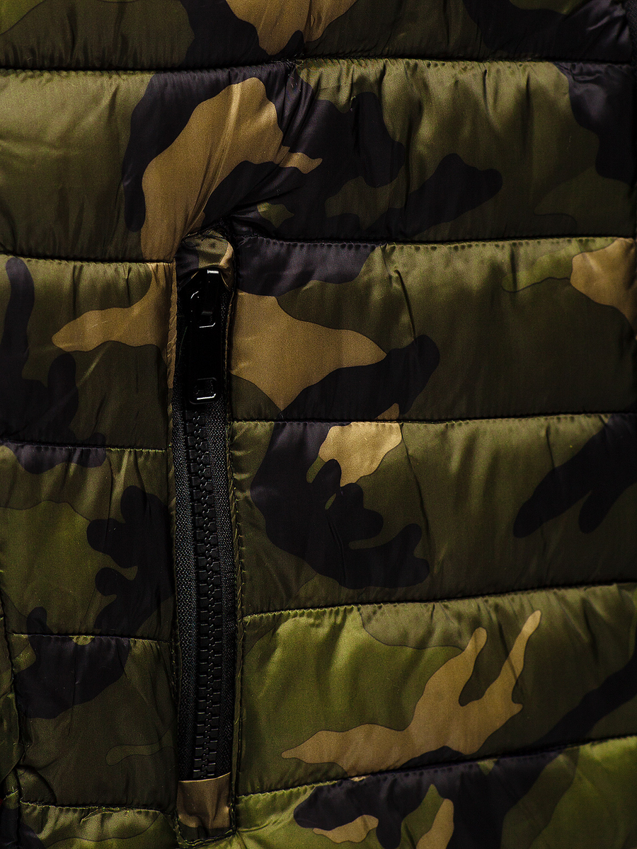 Зеленото мъжко капитонирано камуфлажно зимно спортно яке Bolf SM80 е идеално за есенния и зимния сезон. Този модел е с цип, има висока яка и ръкави, завършени с еластичен маншет. Якето е допълнено с изключително модерен камуфлажен десен, а капитонирането по цялата повърхност му придава унукален, модерен характер. Изработено е от 100% полиестер. Има два практични външни джоба с ципове и два вътрешни без закопчаване. Благодарение на своята универсалност, продуктът може да се комбинира с много стилизации. Идеално е за разходка, среща с приятели или пътуване до града. В комбинация с панталони чино и тениска с дълъг ръкав ще създадете перфектния стил.