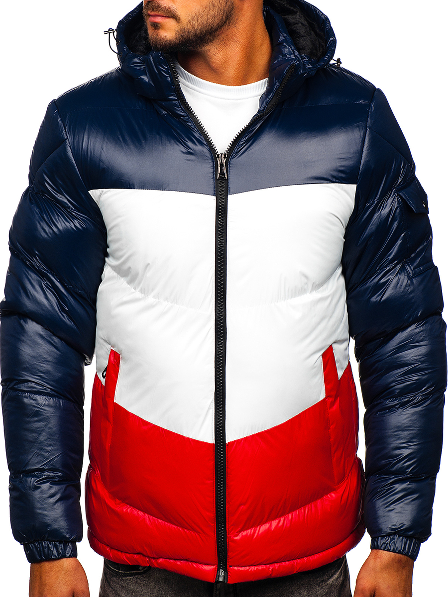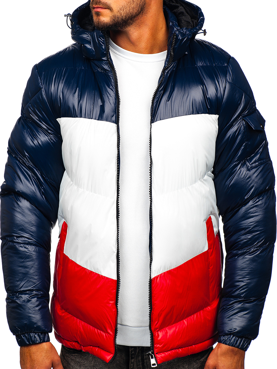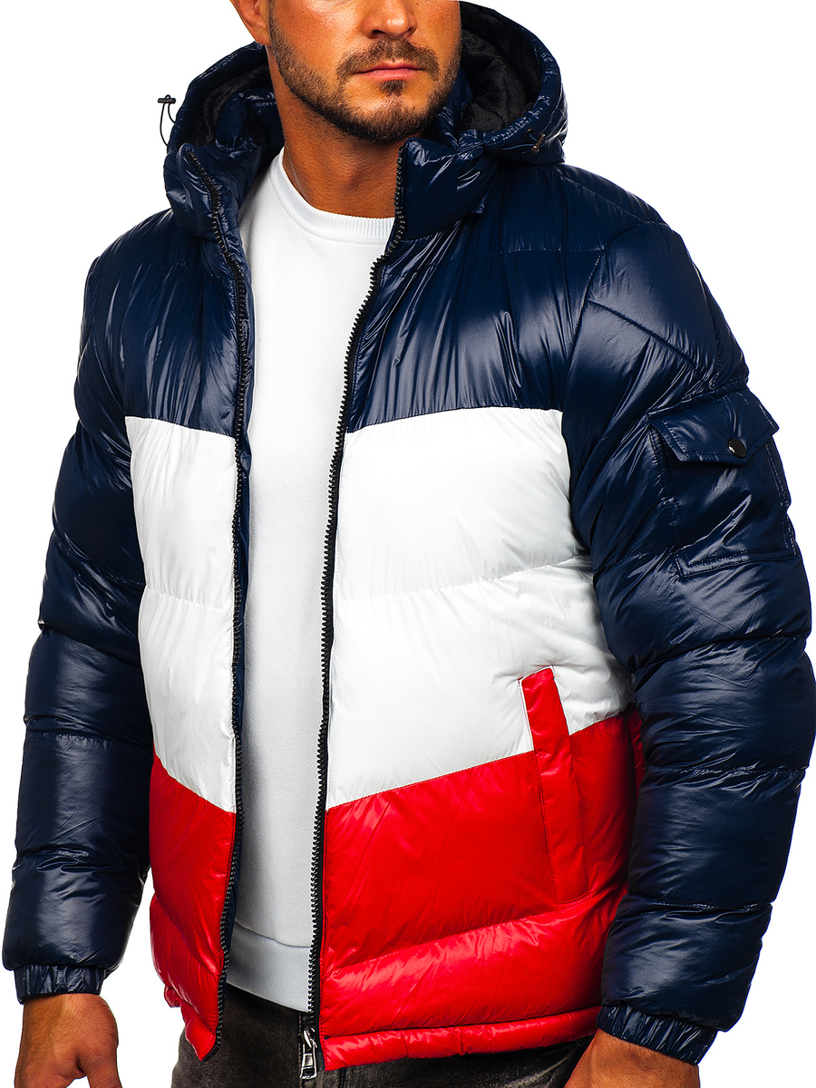 Отзиви и мнения на потребители за Тъмносиньо-червено капитонирано мъжко зимно яке Bolf 6593