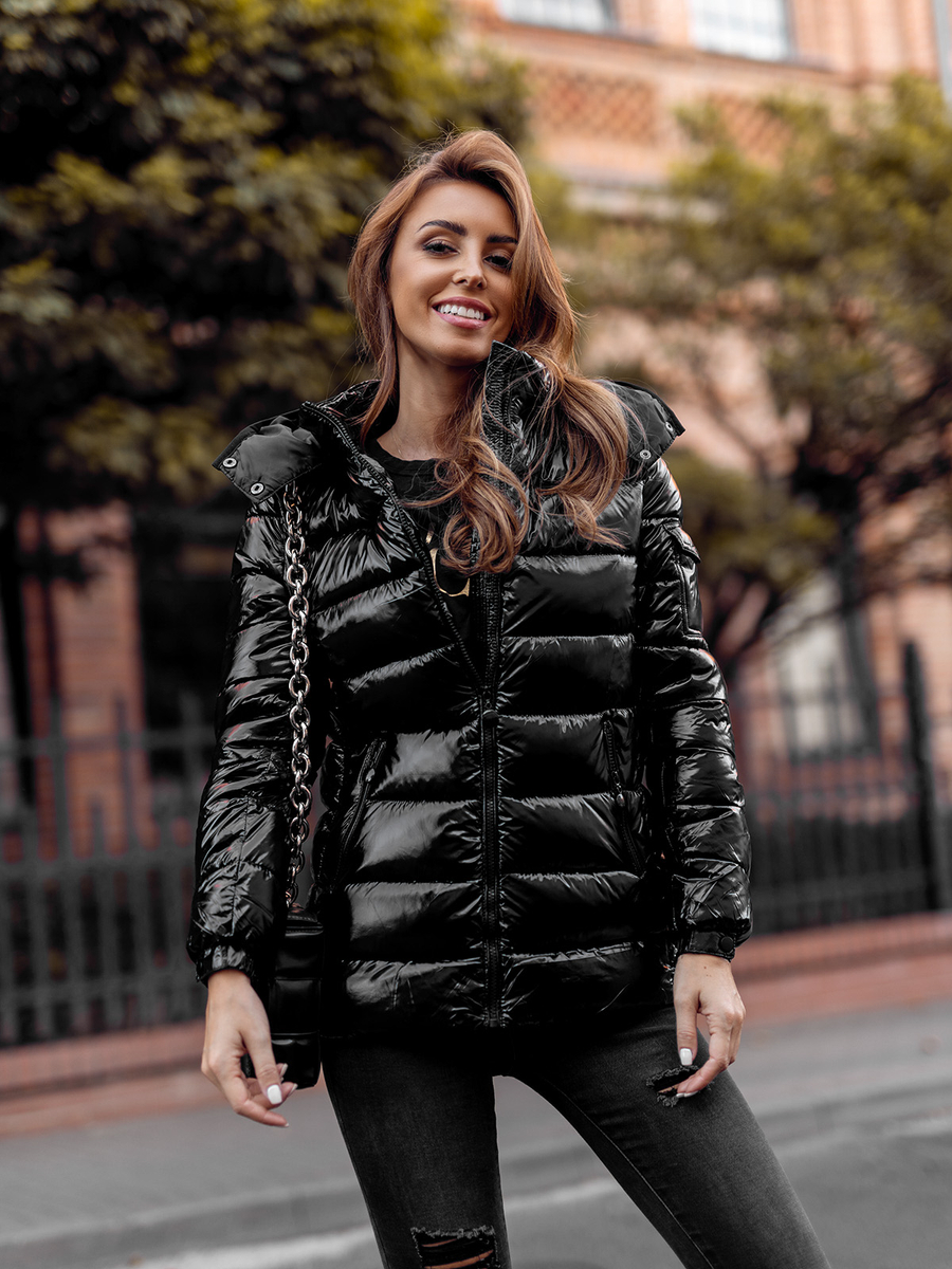 Черно капитонирано дамско зимно яке с качулка Bolf B9583