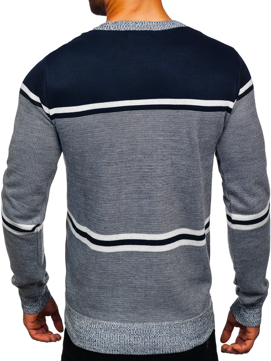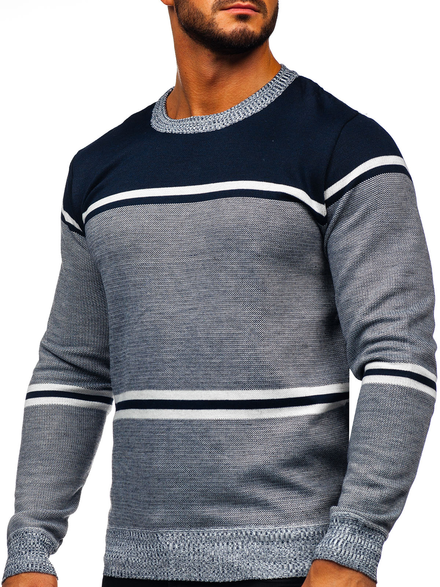 Мъжки пуловер Bolf 6300,това е пуловер с casual характер. Има обло деколте завършено с щрик Долният подгъв и ръкавите са завършени с щрик, благодарение на което пуловерът пасва на всяка фигура. Прилепва по фигурата. Благодарение на монтирания стил позволява на всеки да изглежда колосално. Модерното на райета добавя характер. Продуктът е изработен от мека, приятна на допир материя, която страхотно се адаптира по тялото. Ушити са от 65% велна, 30% акрил, 5% еластан. Облечете го на работа, училище, кино, на разходка или среща с приятели - благодарение на широката гама от цветове, можете да изглеждате различно всеки ден. Страхотно се съчетава с дънки и кожено яке създаване на перфектната екипировка за отдих в града. Добре се съчетава с джогър и суитшърт, създаване на по-свободен стил.