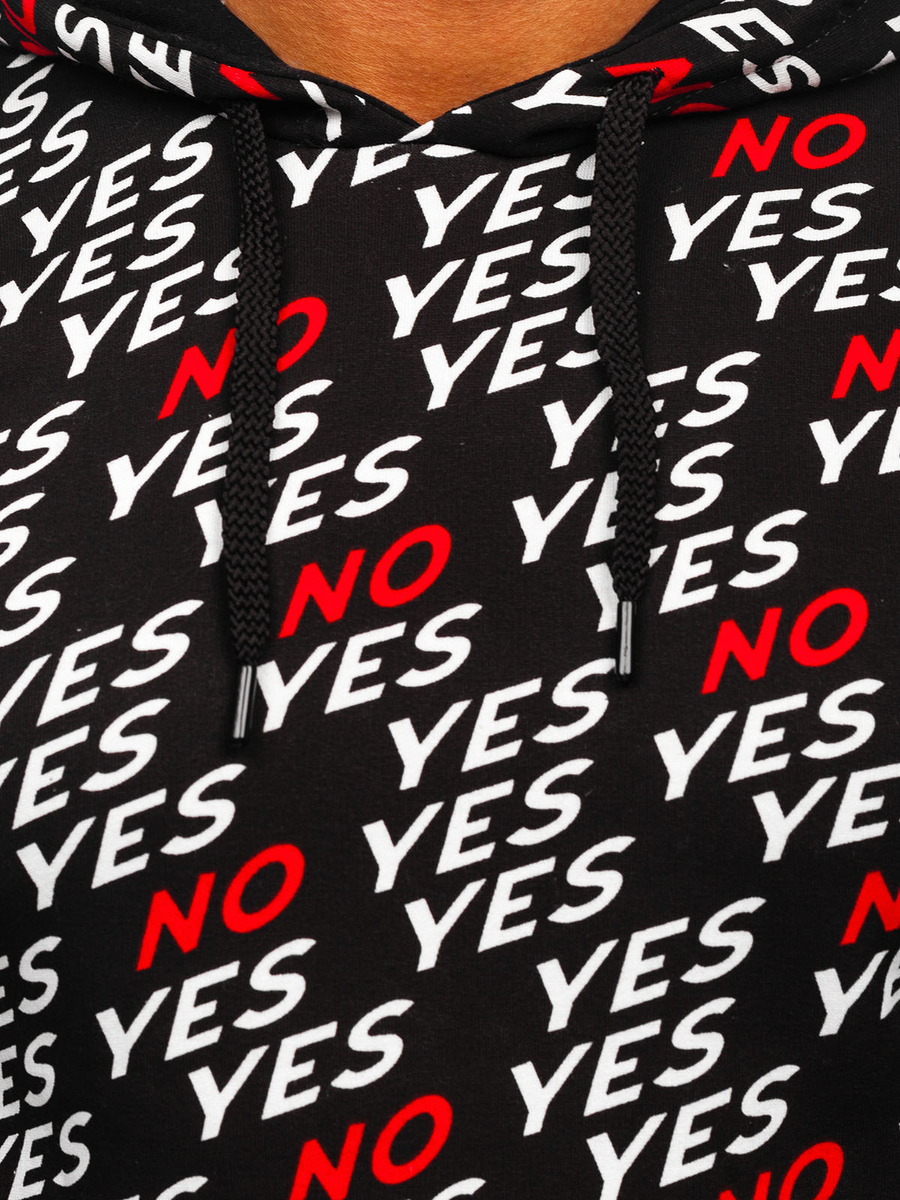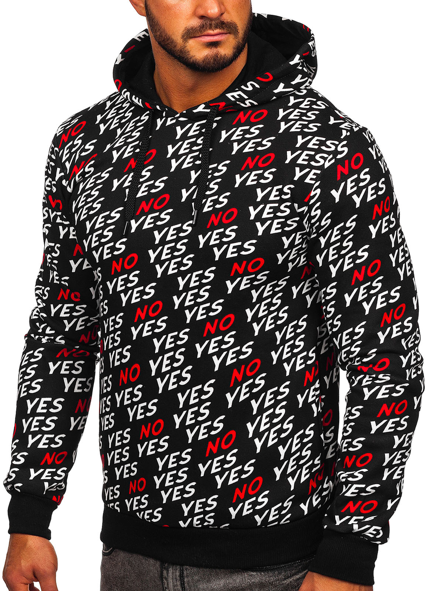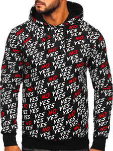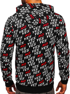 Черен с принт мъжки суитшърт с качулка Bolf 141013