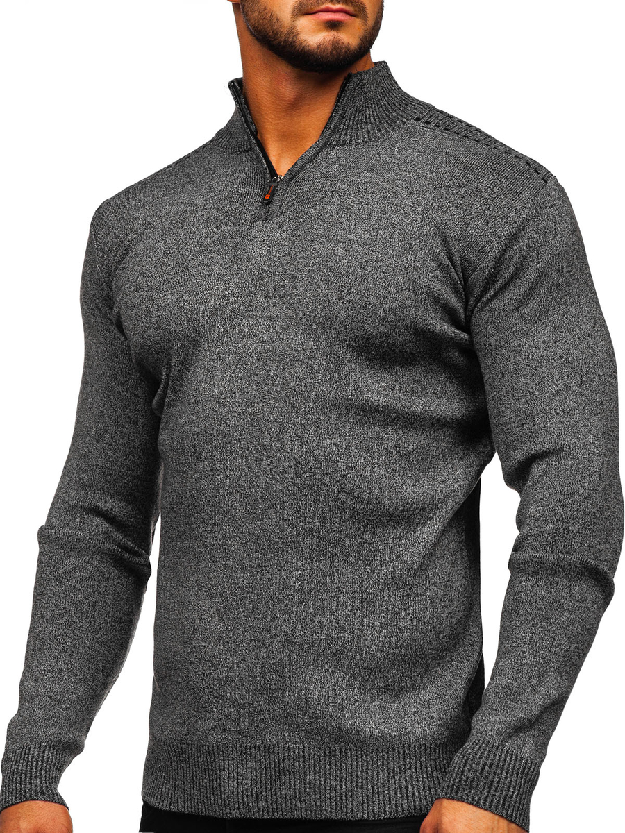Отзиви и мнения на потребители за Графитен мъжки пуловер с вгината яка Bolf S8279