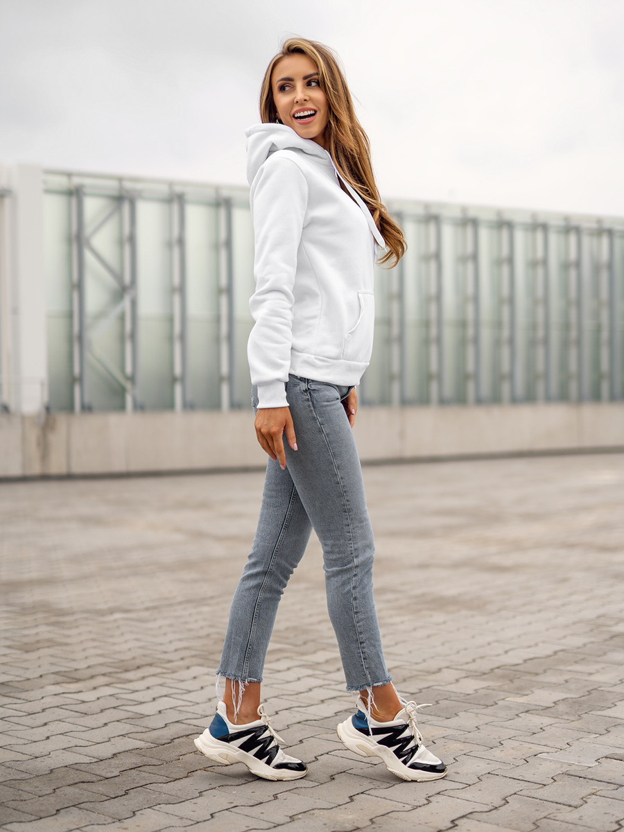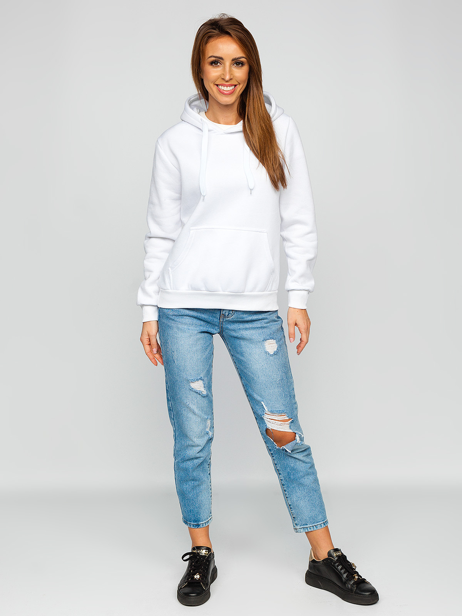 Дамски суитшърт бял с джобове кенгуру Bolf W02B