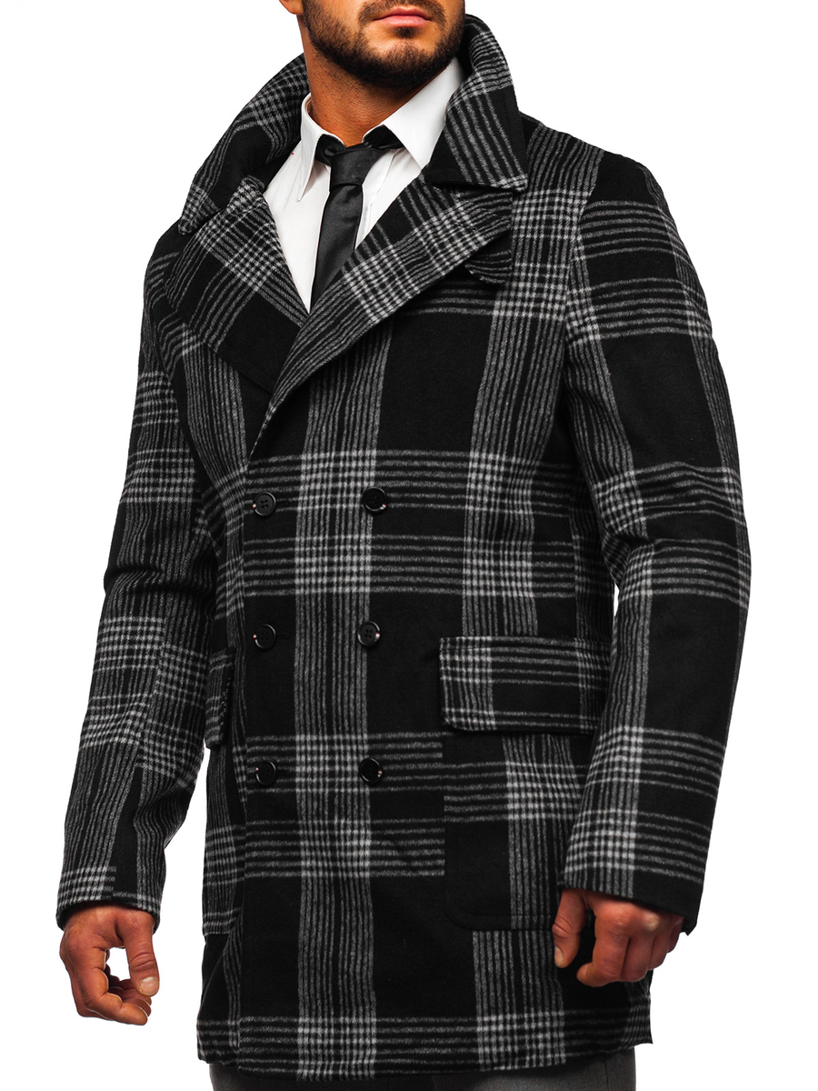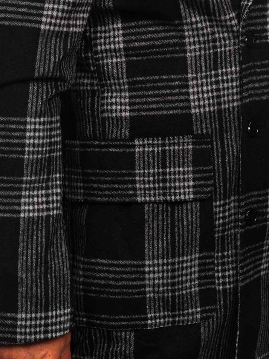 Черно топло мъжко карирано палто Bolf 1193