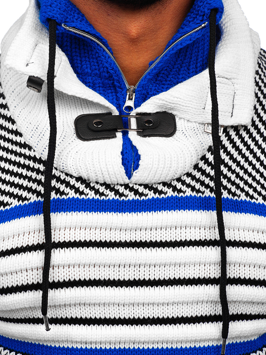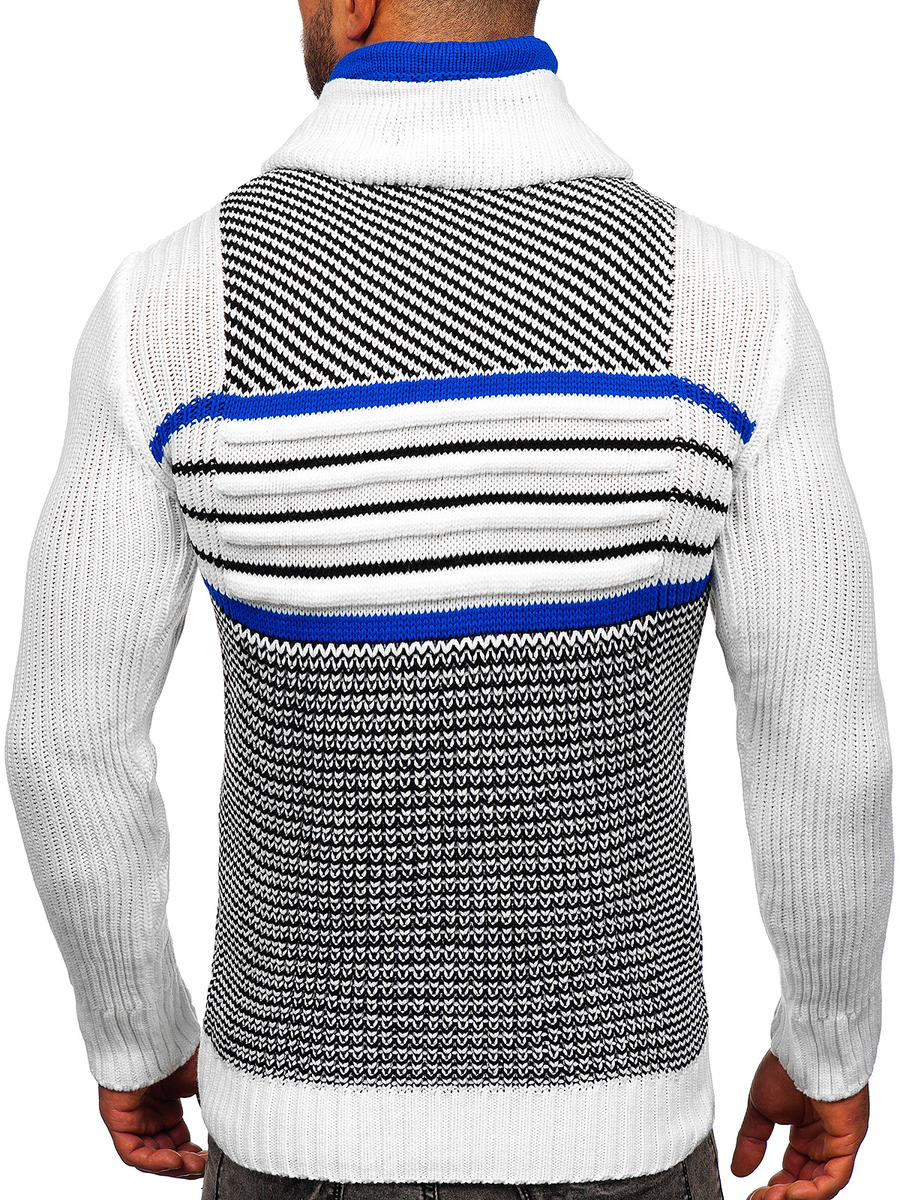 Бял дебел мъжки пуловер с вдигната яка Bolf 2000