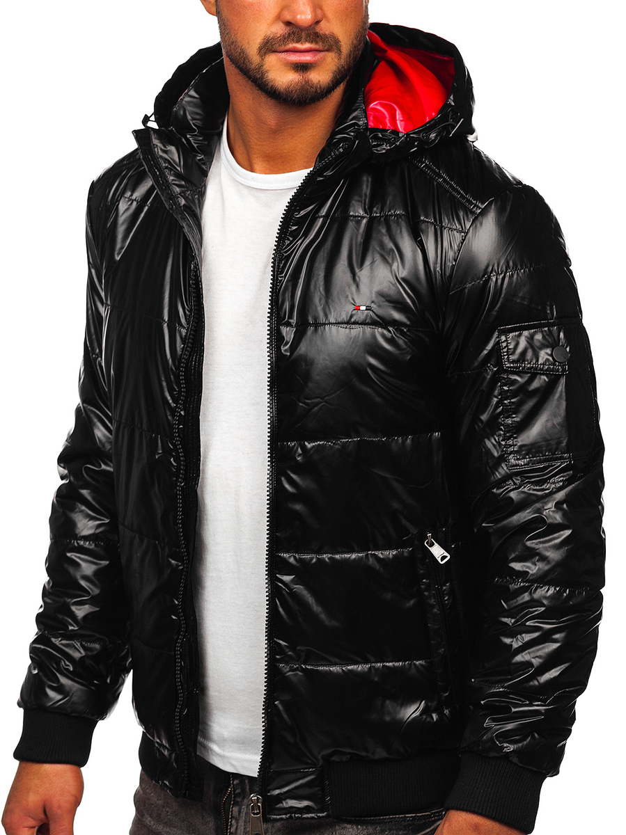 Черно капитонирано мъжко преходно спортно яке Bolf 2143
