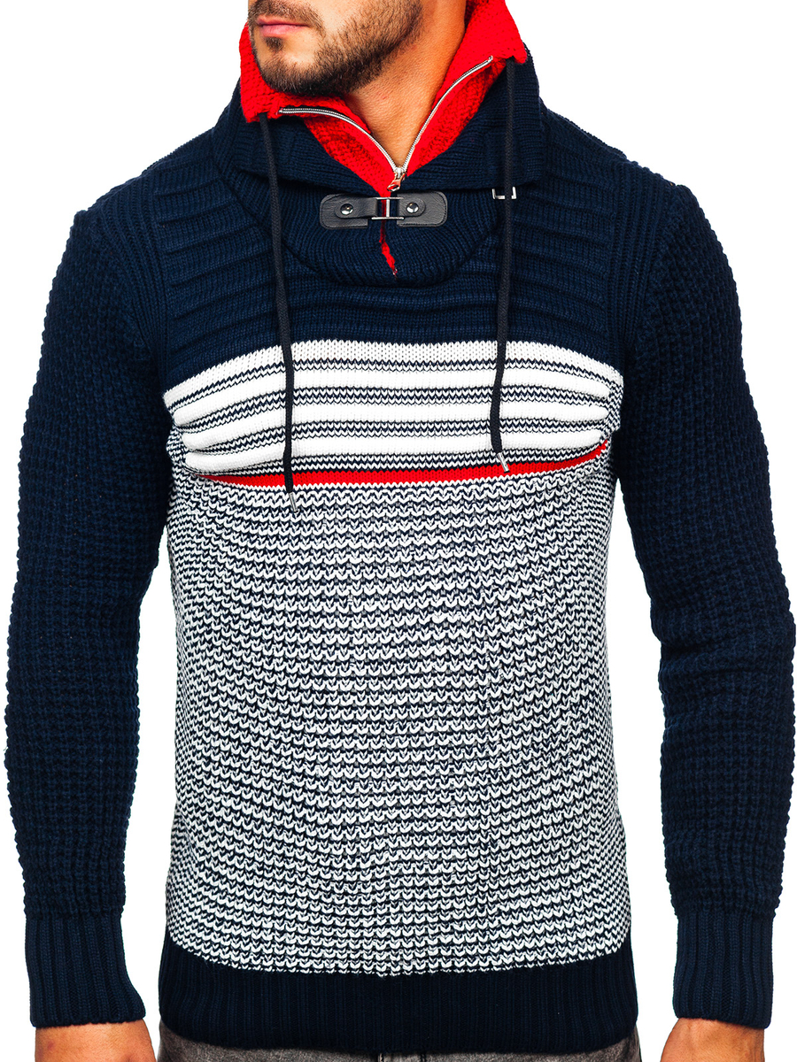 - Мъжки пуловер в тъмносиньо и червен цвят