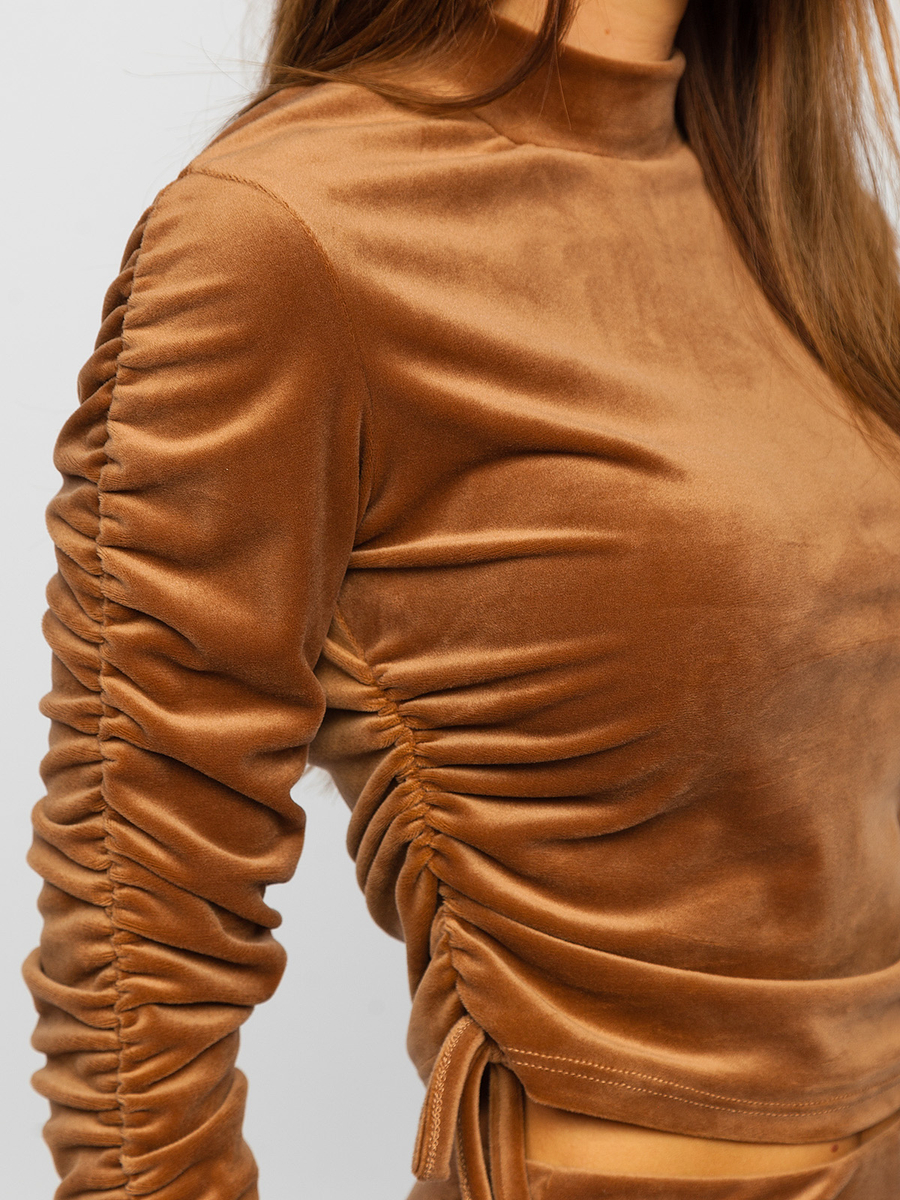 Велурен анцуг дамски Bolf 7511 това е изключително женски спортен комплект, който перфектно подчертава женския силует. Комплектът включва суитшърт с качулка и спортно долнище. Долнището е регулируемо в кръста чрез силен широк ластик и връзки. Спортен характер му придават простият фасон. Продуктът е изработен от мека, приятна на допир материя. Анцугът може да бъде универсална база за създаване на ежедневен или спортен стил. Както суитшърт, така и панталоните могат да бъдат комбинирани с други елементи от гардероба, като по този начин получават много възможности за създаване на ежедневни аутфити. Комплектът е идеален за кардиган, тениска и преходно яке. Спортни комплекти се препоръчва да се носят у дома, на разходка, пазаруване, или по време на спорт във фитнес залата или на открито.