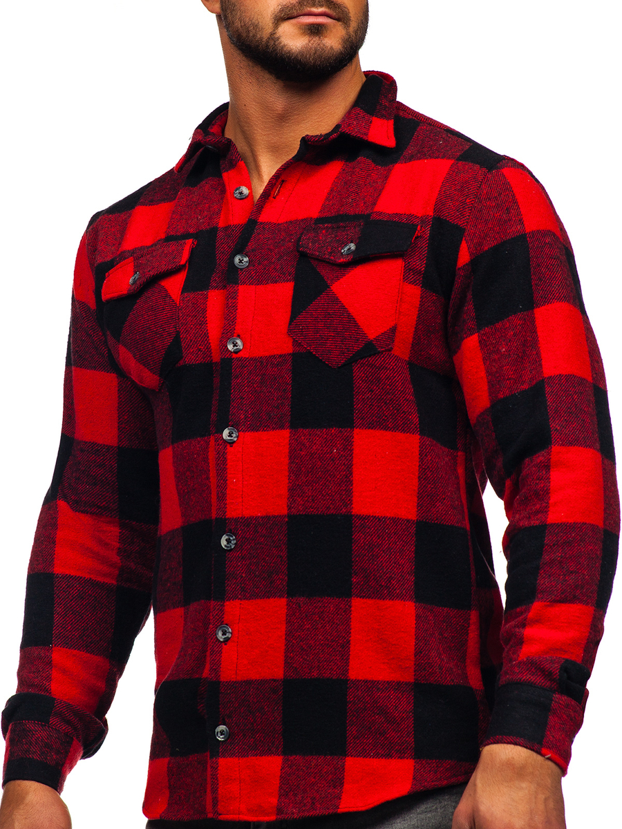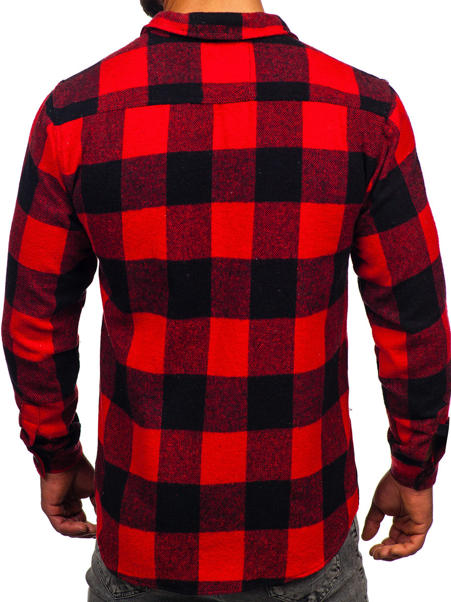 Черно-червена мъжка елегантна бархетна риза с дълъг ръкав Bolf 20723