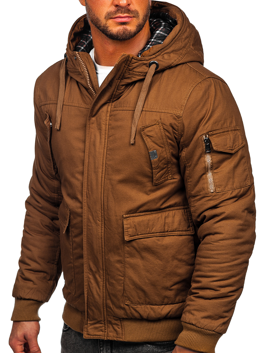 Мъжко зимно яке Bolf 1890 един от най-търсените елементи в есенно-зимния сезон. Подплатено яке с цип и копчета. Има регулируема, интегрирана яка, вградена качулка, чийто характер добавя подплата към карирания модел. Зимното яке от този тип е подходящо както за спортни, така и за ежедневни стилове, но също така е подходящо за street аутфити, а в някои случаи и за интелигентни smart casual. Едноцветно яке черно. Той има висока яка с цип, която допълнително предпазва от проникващ студ и вятър. Якето има много практически джобове В долната част има два външни джоба, много просторен тип карго, закопчани с тик-так копчета и два странични джоба Освен това има два джоба на гърдите, покрити с клапан, също с тик-так копчета и един вътрешен джоб с цип. Ръкавите и долният подгъв са завършени с щрик. Якето се вписва перфектно в съвременните модни тенденции. Тя е изработена от дебела, топла тъкан с високо качество, тя ще ви предпази от студа дори и в най-мразовитите дни. Перфектно допълва ежедневието си, перфектно в студа.