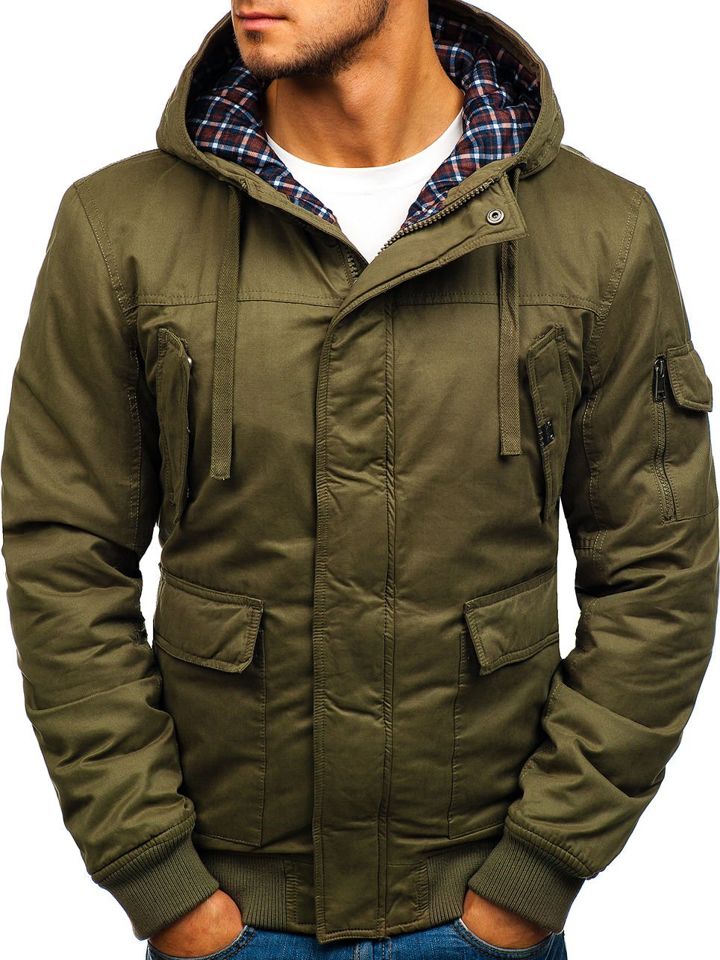 Мъжко зимно яке Bolf 1890 един от най-търсените елементи в есенно-зимния сезон. Подплатено яке с цип и копчета. Има регулируема, интегрирана яка, вградена качулка, чийто характер добавя подплата към карирания модел. Зимното яке от този тип е подходящо както за спортни, така и за ежедневни стилове, но също така е подходящо за street аутфити, а в някои случаи и за интелигентни smart casual. Едноцветно яке черно. Той има висока яка с цип, която допълнително предпазва от проникващ студ и вятър. Якето има много практически джобове В долната част има два външни джоба, много просторен тип карго, закопчани с тик-так копчета и два странични джоба Освен това има два джоба на гърдите, покрити с клапан, също с тик-так копчета и един вътрешен джоб с цип. Ръкавите и долният подгъв са завършени с щрик. Якето се вписва перфектно в съвременните модни тенденции. Тя е изработена от дебела, топла тъкан с високо качество, тя ще ви предпази от студа дори и в най-мразовитите дни. Перфектно допълва ежедневието си, перфектно в студа.
