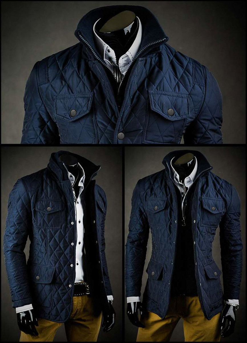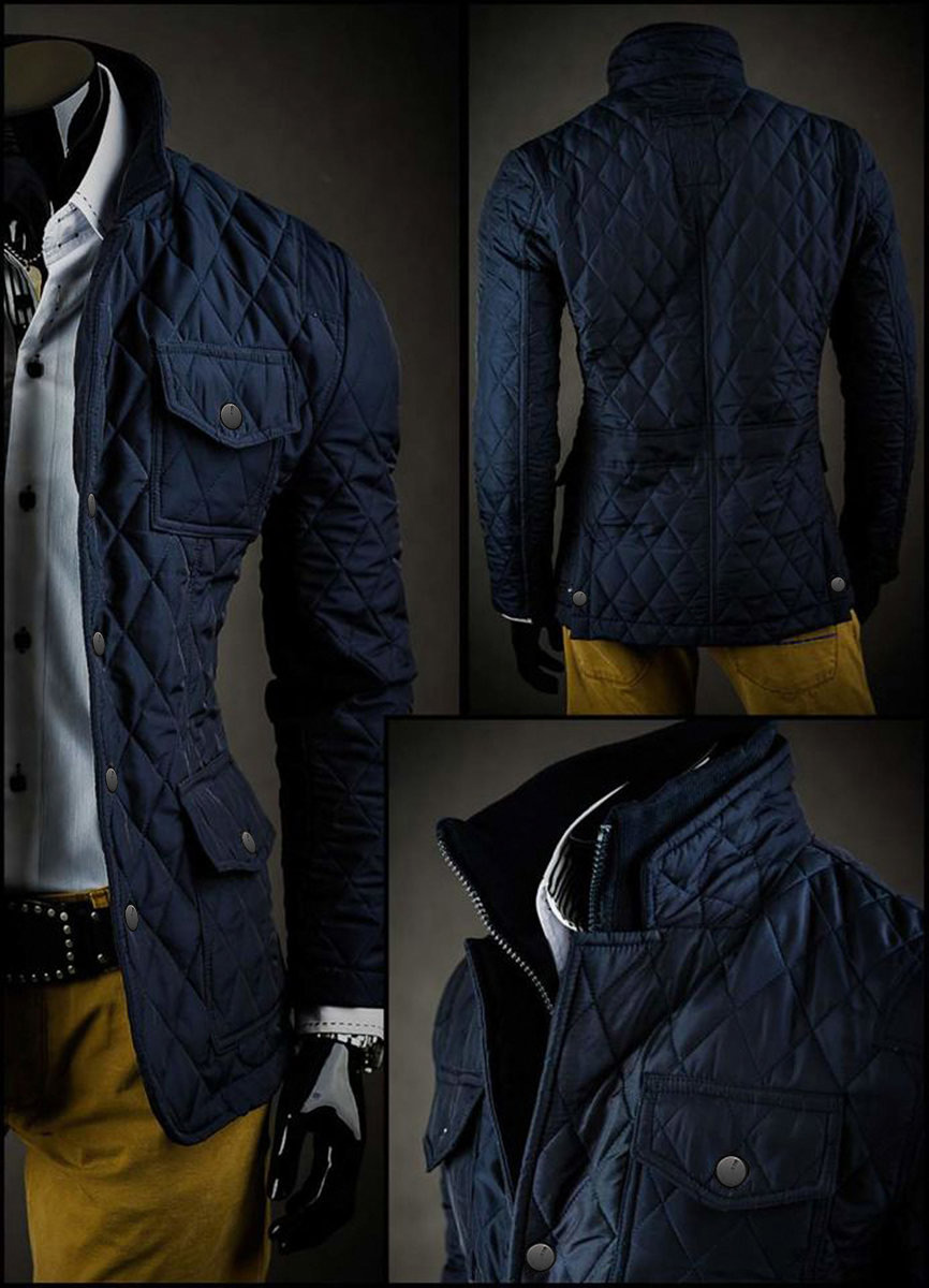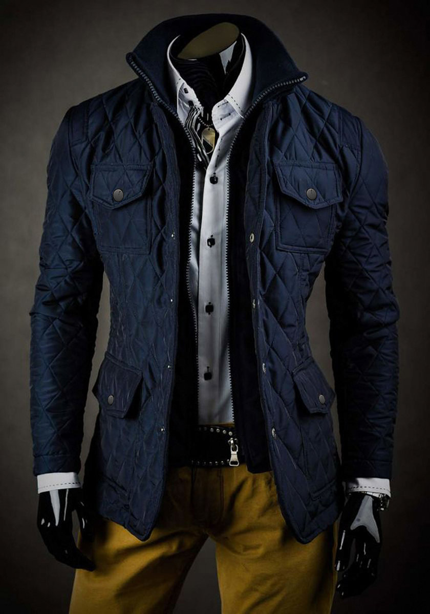 Тъмносиньо елегантно капитонирано мъжко яке Bolf 802A
